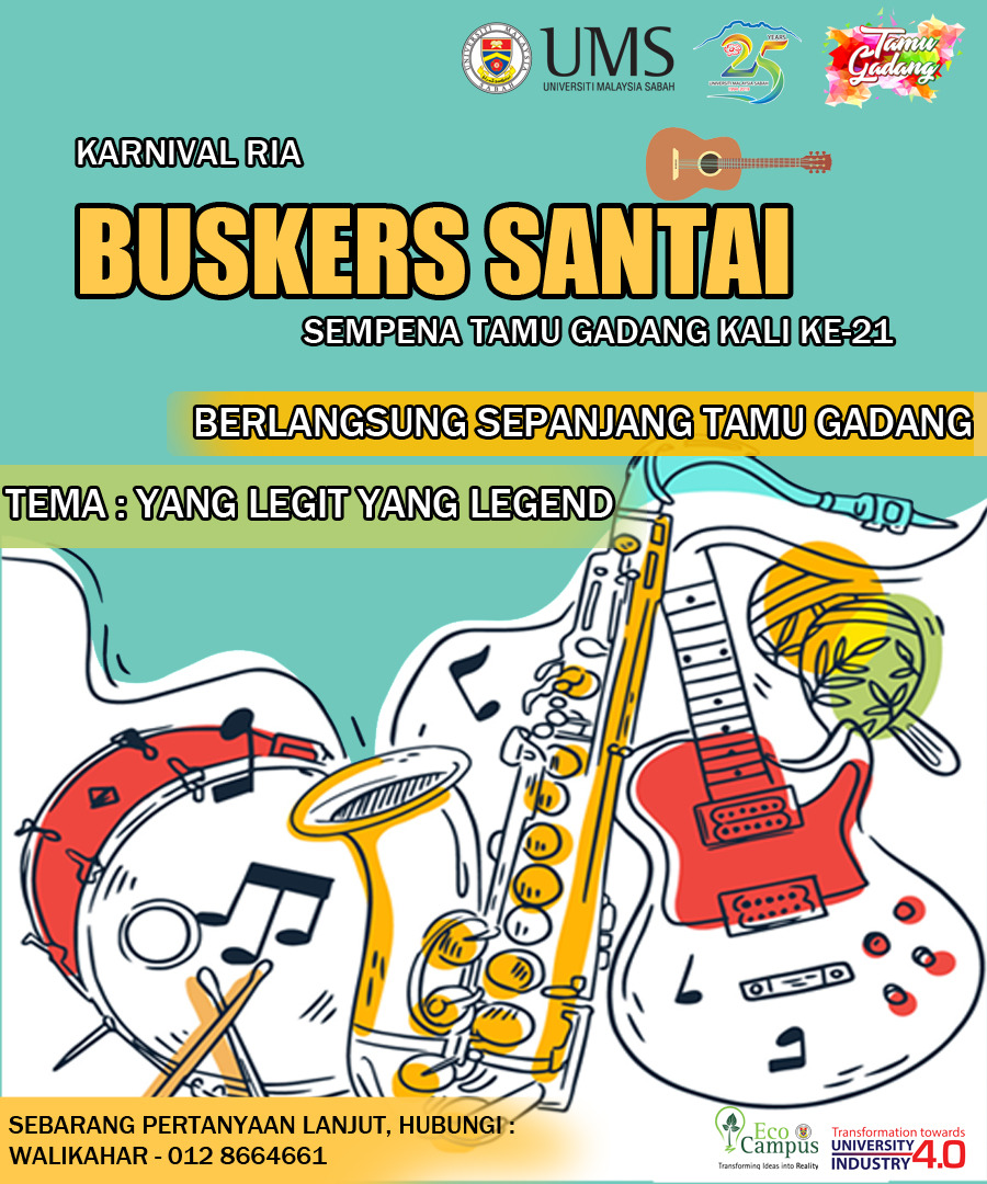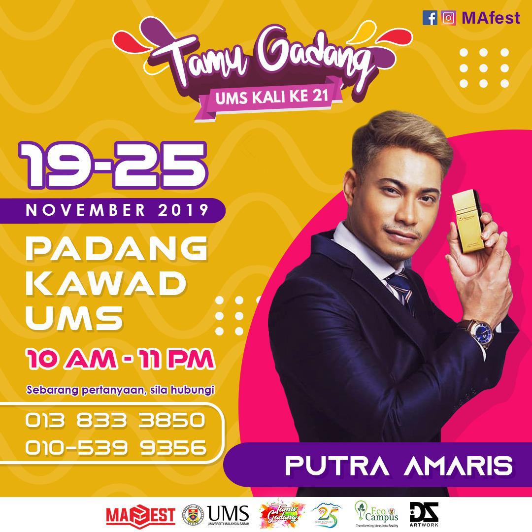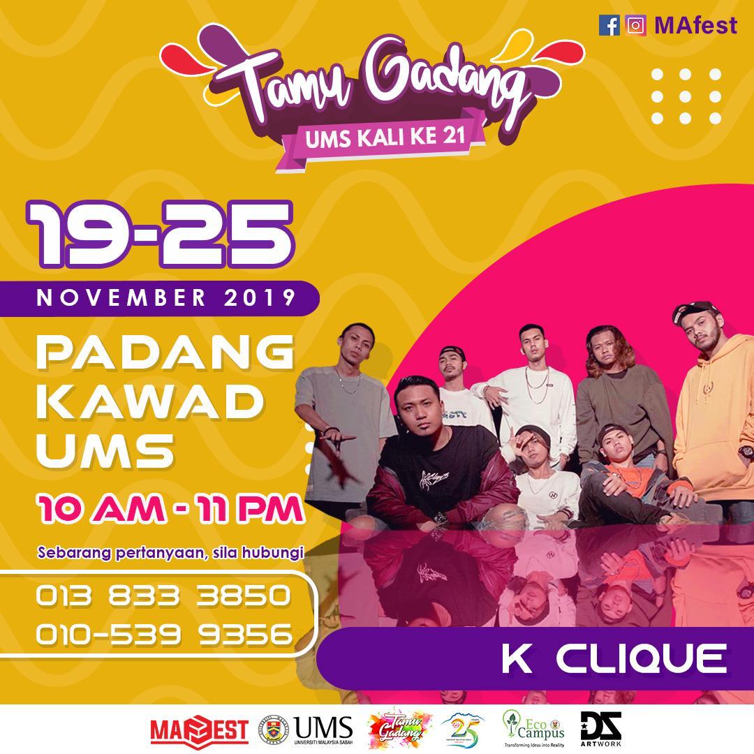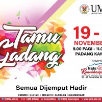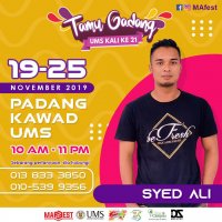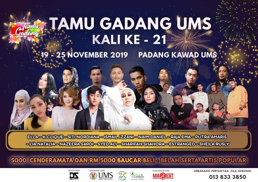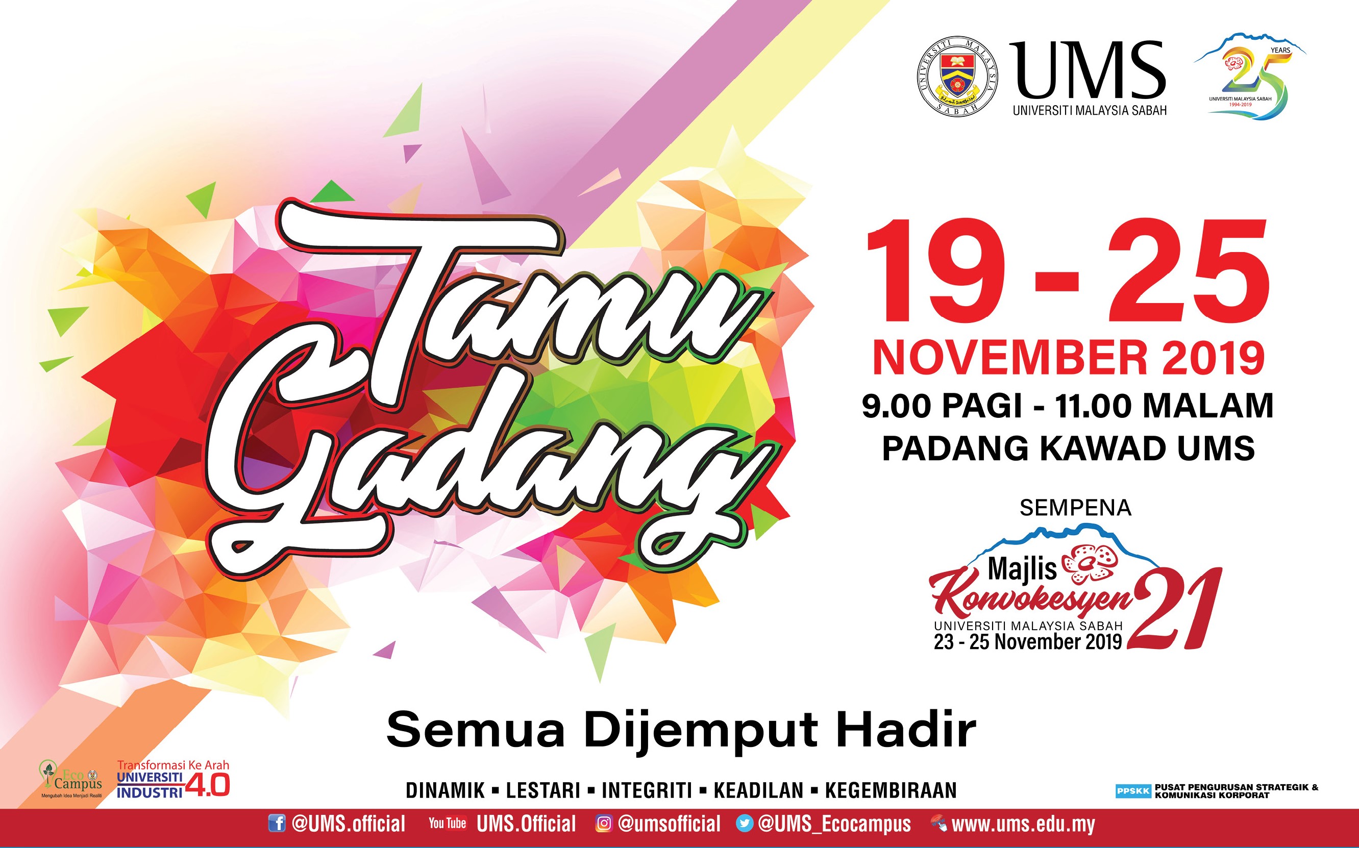 "Datanglah beramai-ramai ke tapak Tamu Gadang UMS pada 19 hingga 25 November 2019 ini, bermula dari jam 9.00 pagi hingga 11.00 malam bertempat di Padang Kawad UMS sempena Majlis Konvokesyen UMS yang ke-21, 2019"