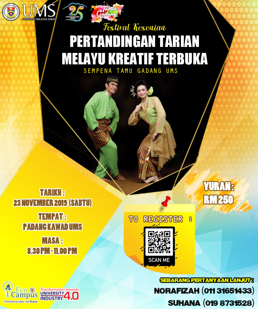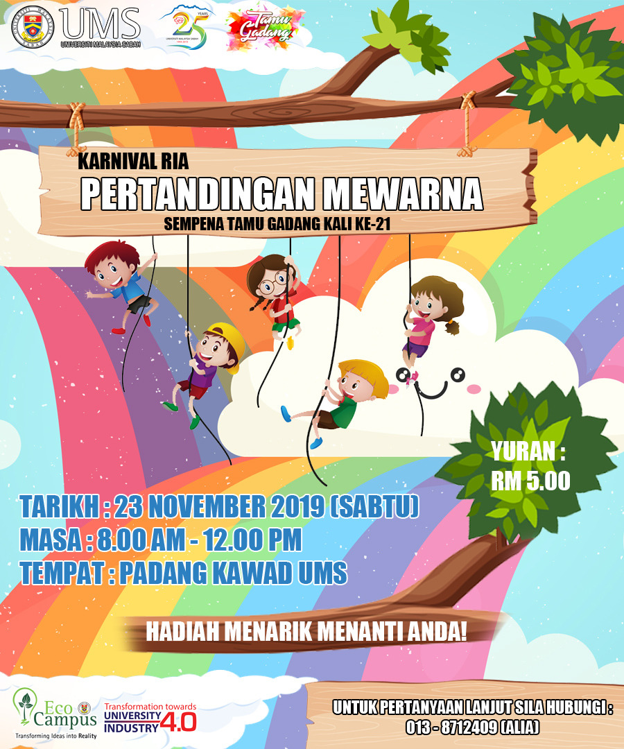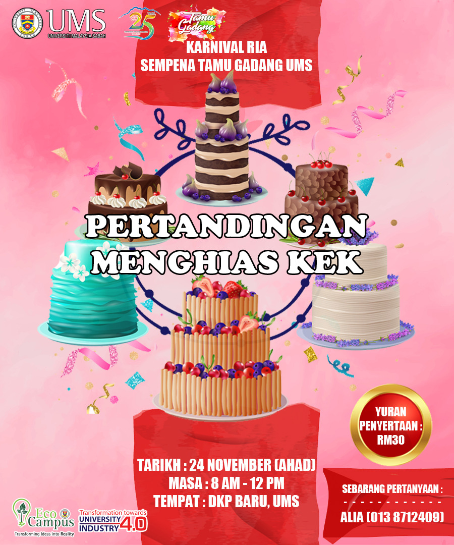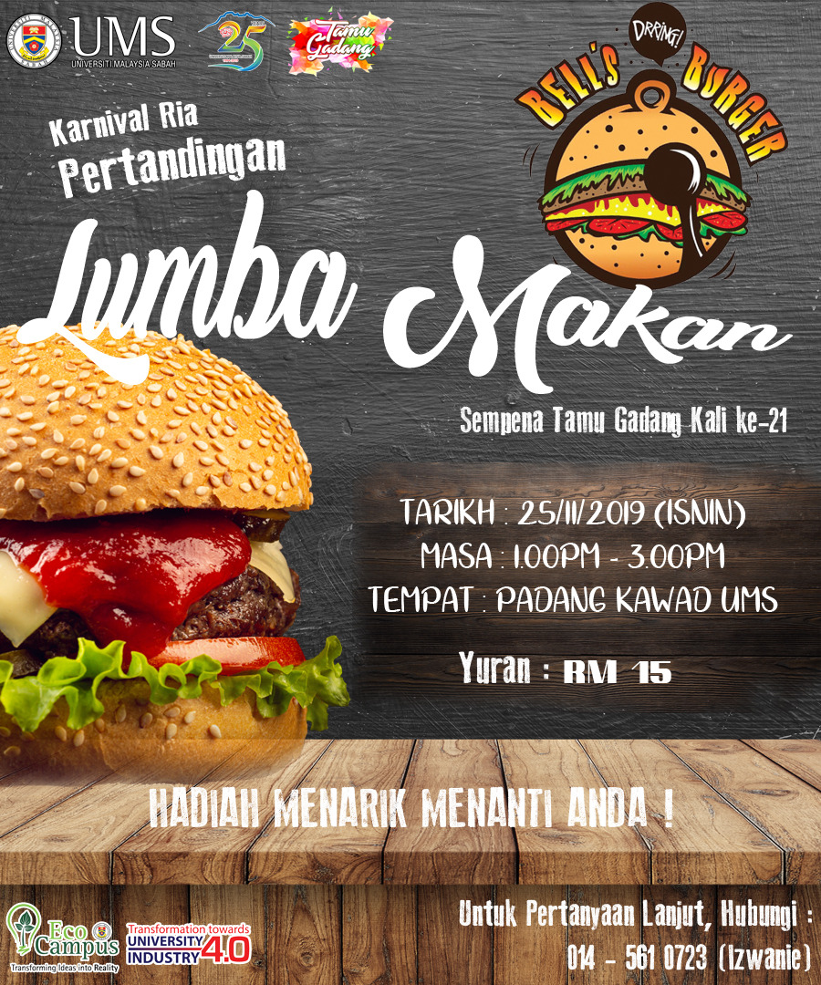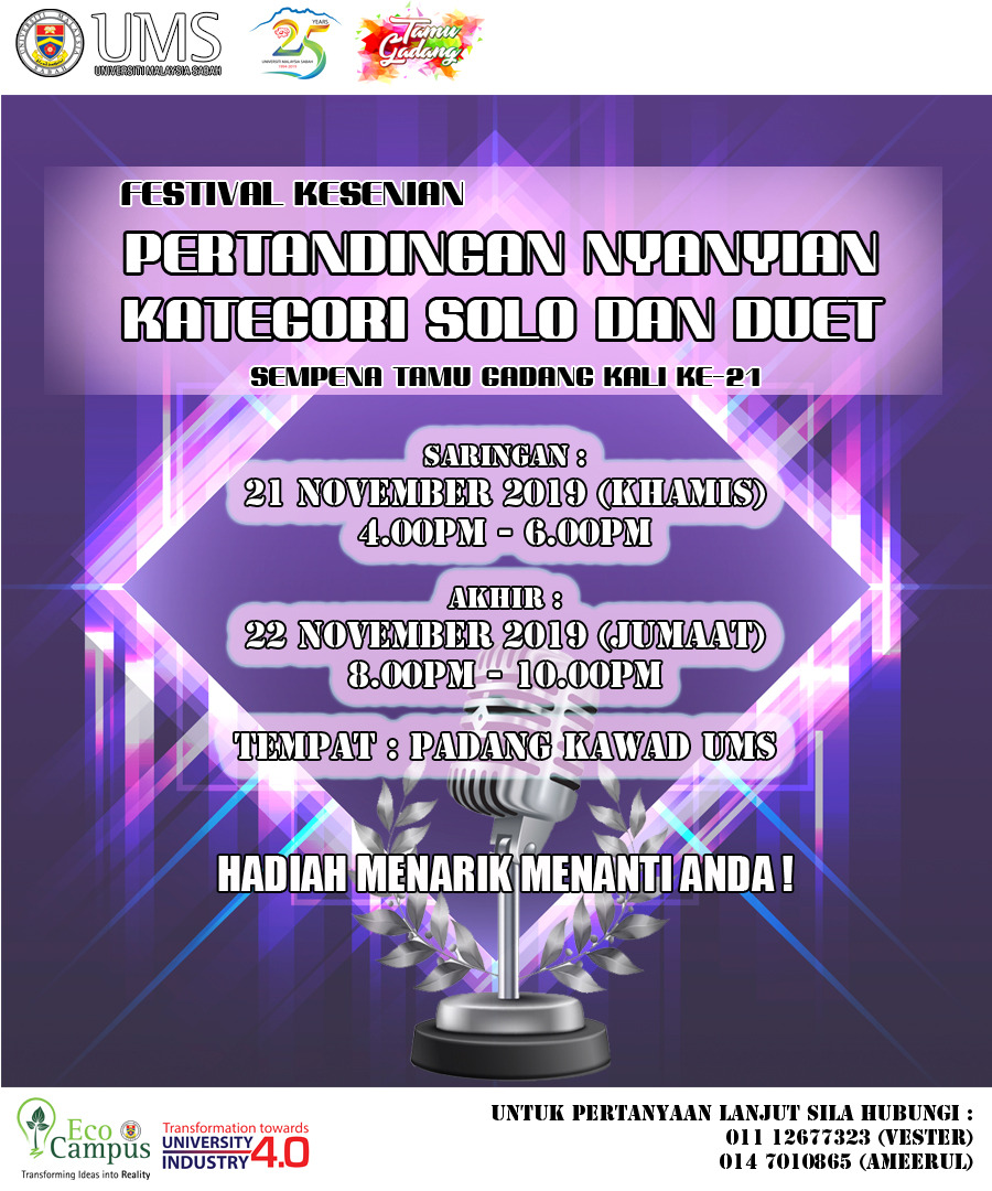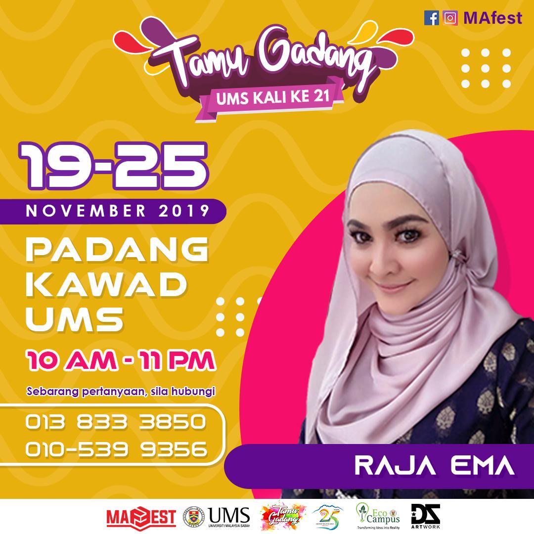"Datanglah beramai-ramai ke tapak Tamu Gadang UMS pada 19 hingga 25 November 2019 ini, bermula dari jam 9.00 pagi hingga 11.00 malam bertempat di Padang Kawad UMS sempena Majlis Konvokesyen UMS yang ke-21, 2019"