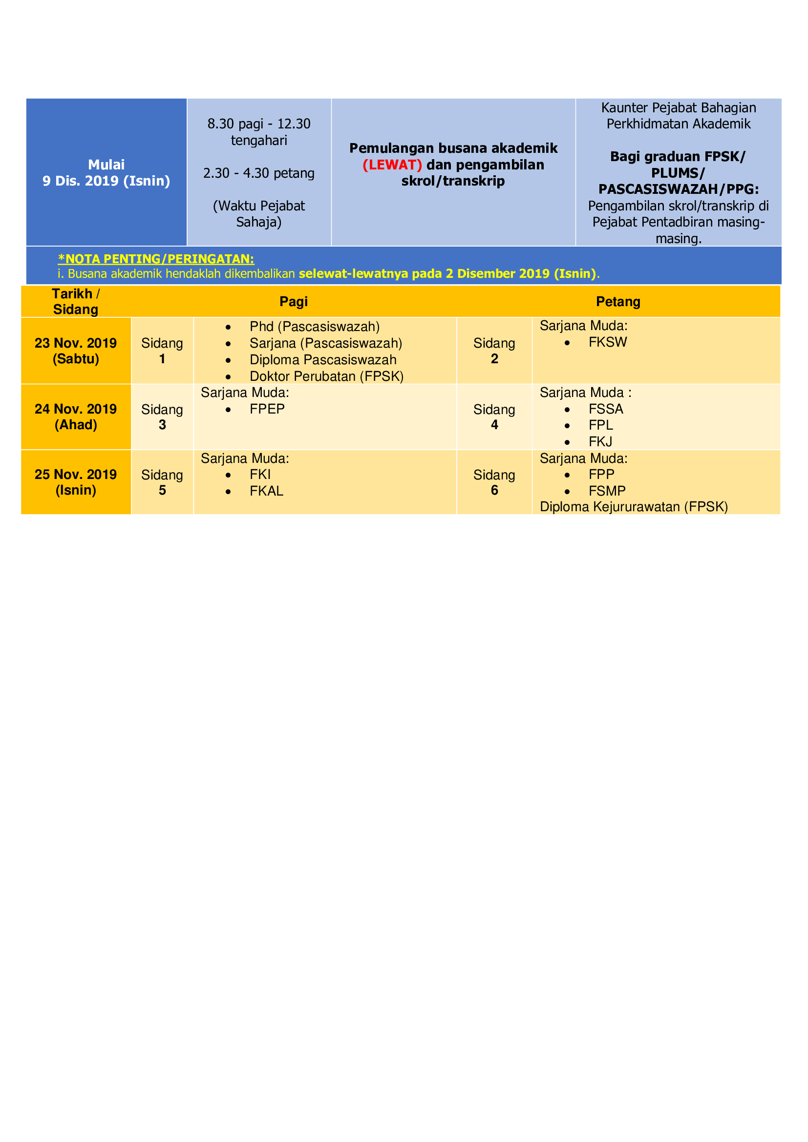 Pengumuman Daripada: Bahagian Perkhidmatan Akademik