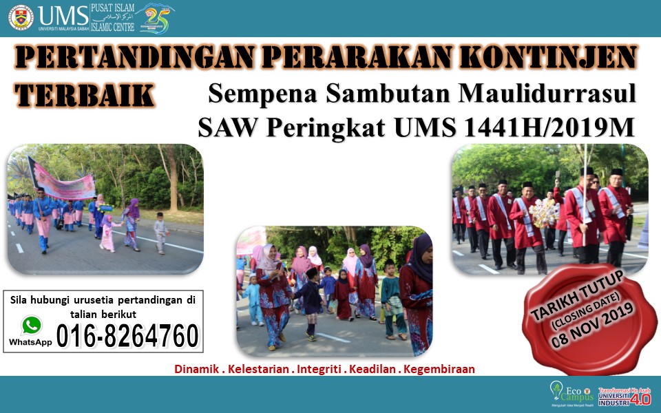 Sila sahkan kehadiran Ybhg Prof./Dr./Tuan/Puan dengan menghubungi Puan Imelda Joanes ditalian sambungan:5580 atau melalui emel : Alamat emel ini dilindungi dari Spambot. Anda perlu hidupkan JavaScript untuk melihatnya.. Sila layari laman web IPB (http://www.ums.edu.my/ipbv2/) untuk maklumat lanjut.
