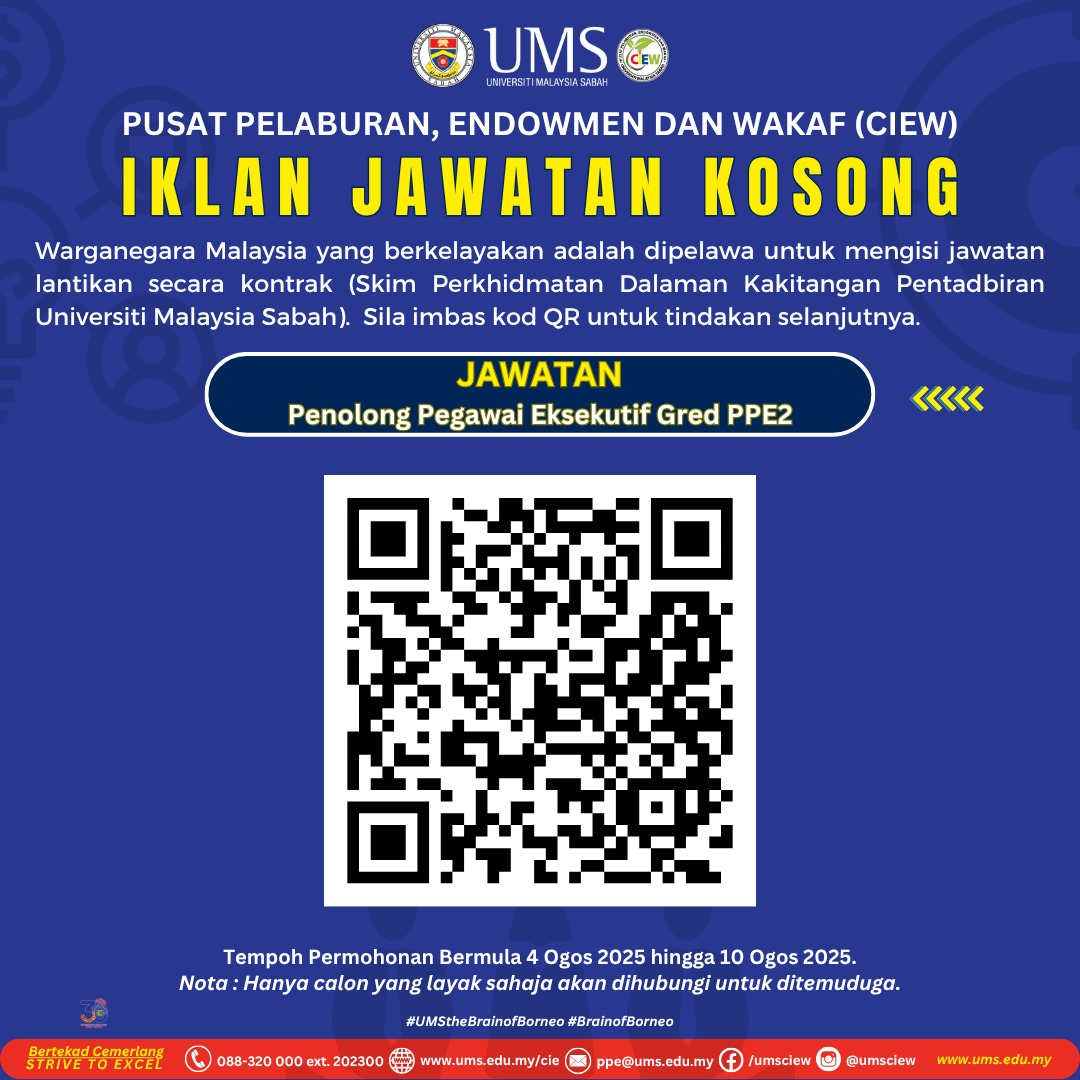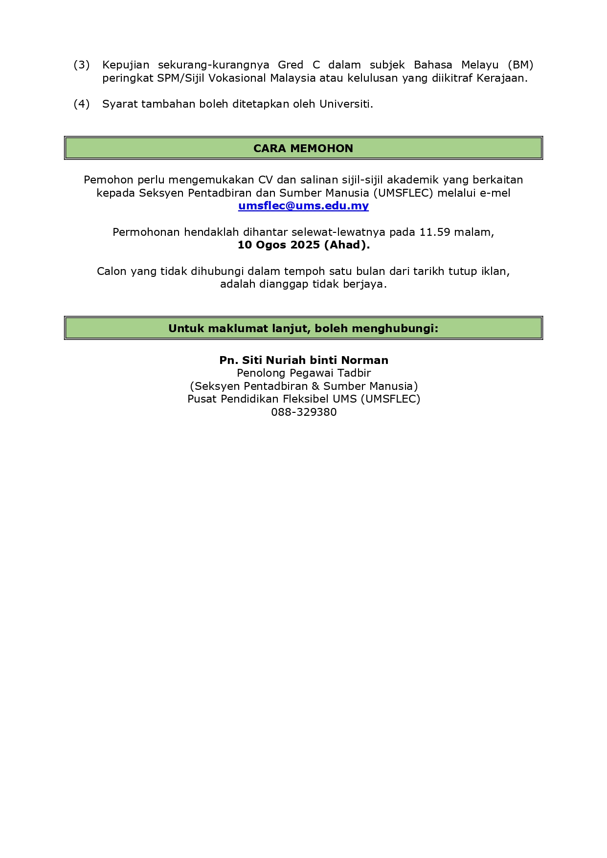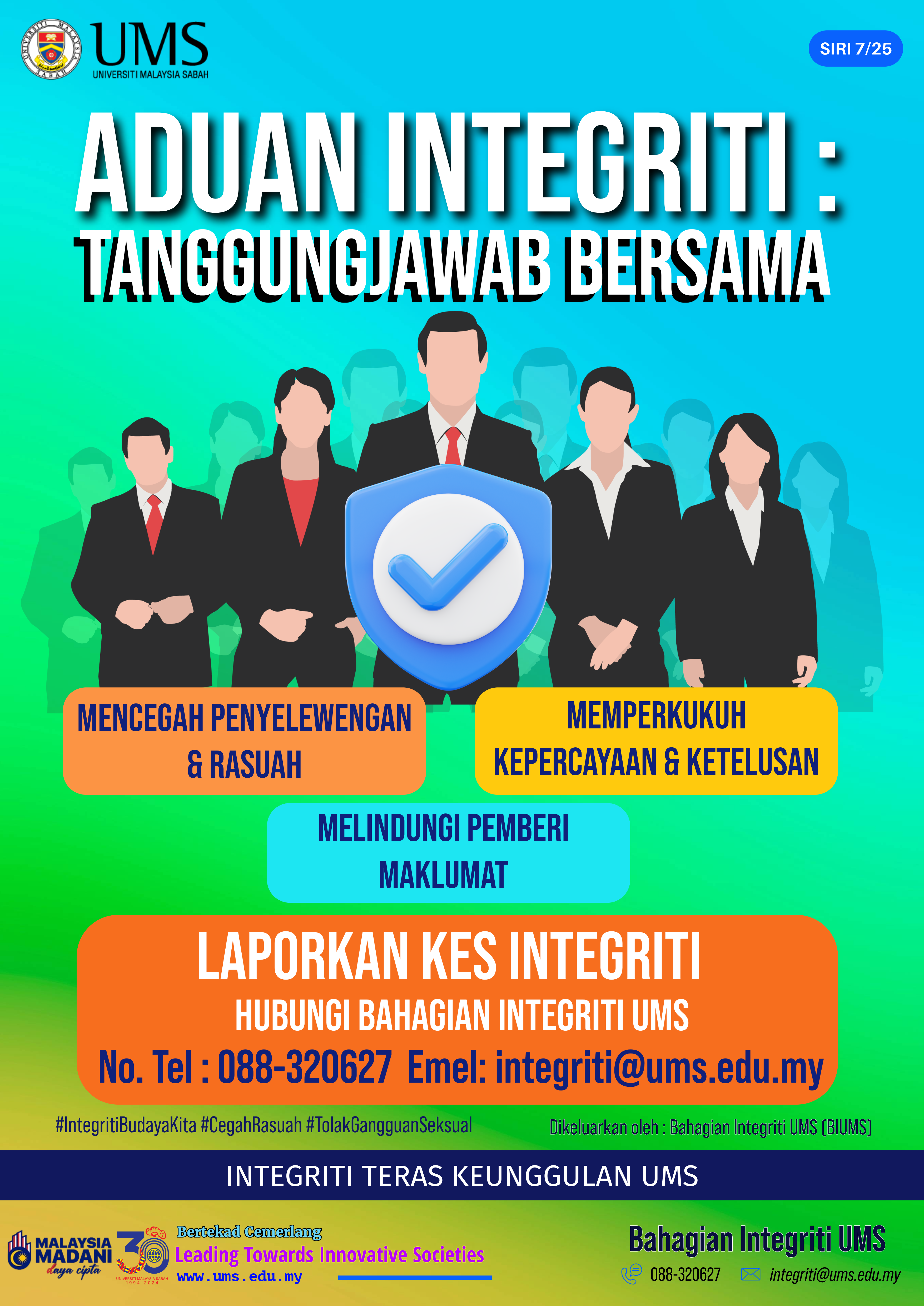 Pusat Komunikasi Korporat (PKK) menyeru semua JAFPIB di Universiti Malaysia Sabah (UMS) untuk mengibarkan Jalur Gemilang dan bendera negeri Sabah bagi menyemarakkan lagi semangat patriotik dan cintakan negara bermula Ogos sehingga 30 September 2025.