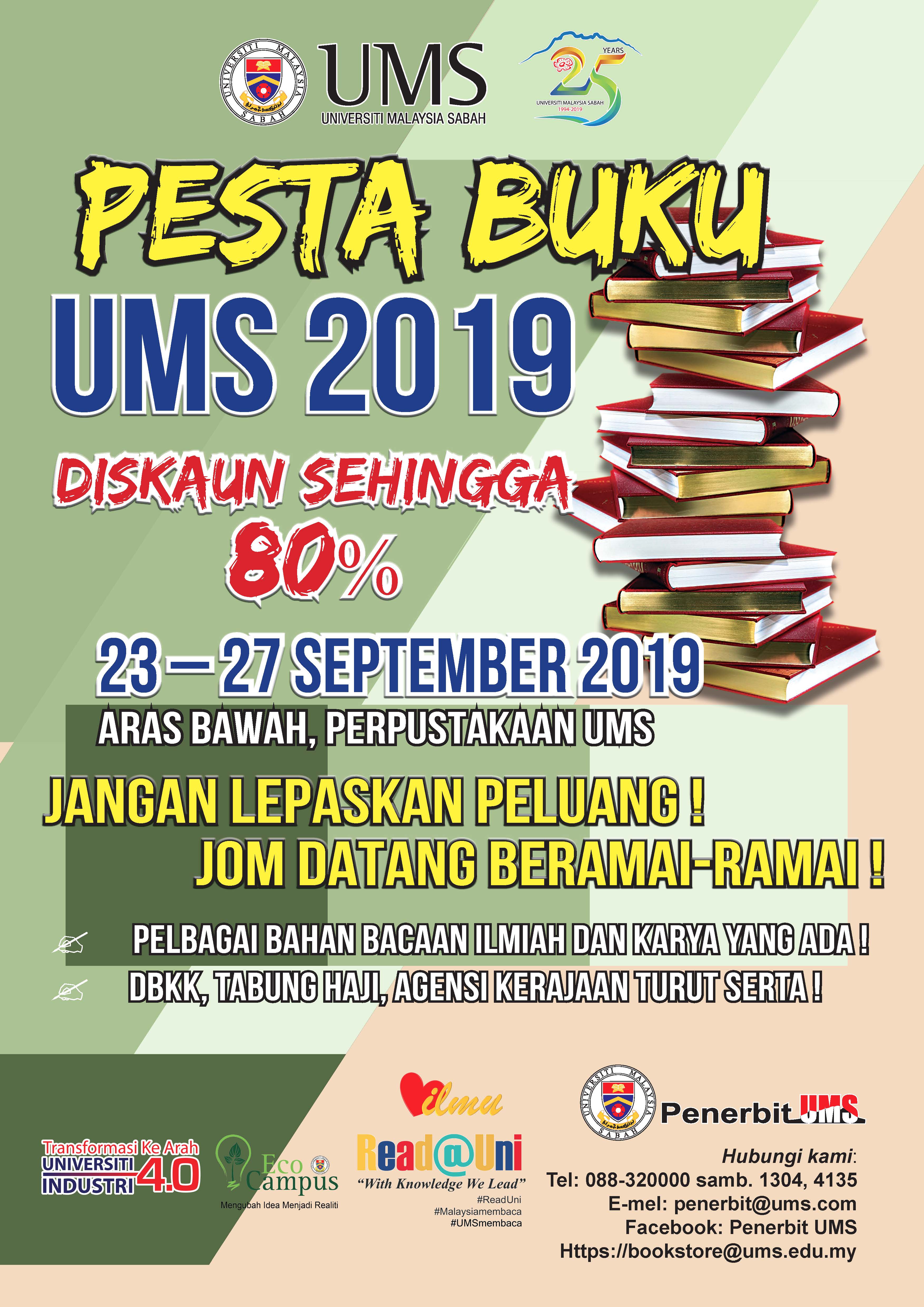 Sukacita dimaklumkan bahawa pihak Penerbit UMS akan mengadakan Pesta Buku UMS 2019 seperti ketetapan yang berikut :