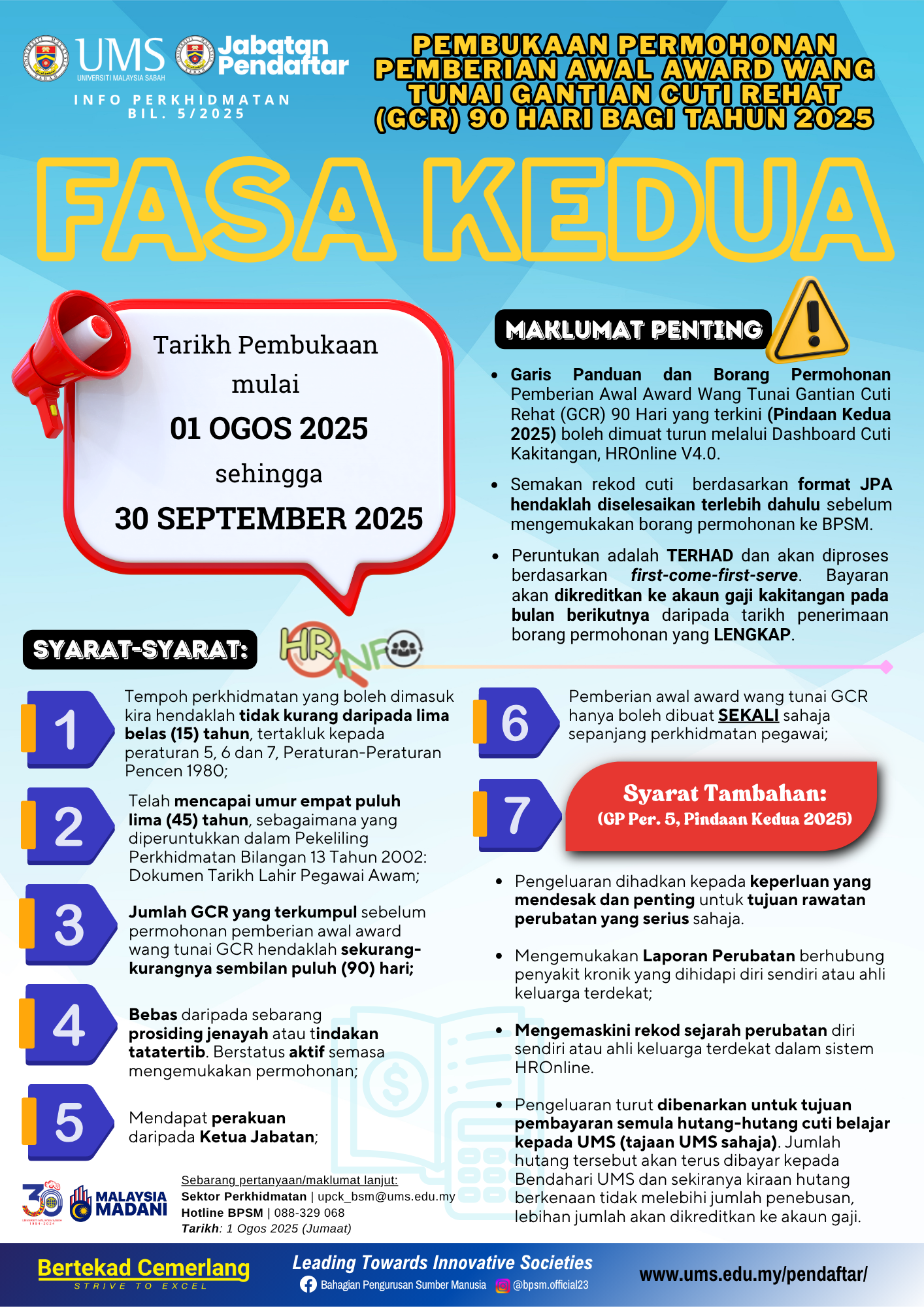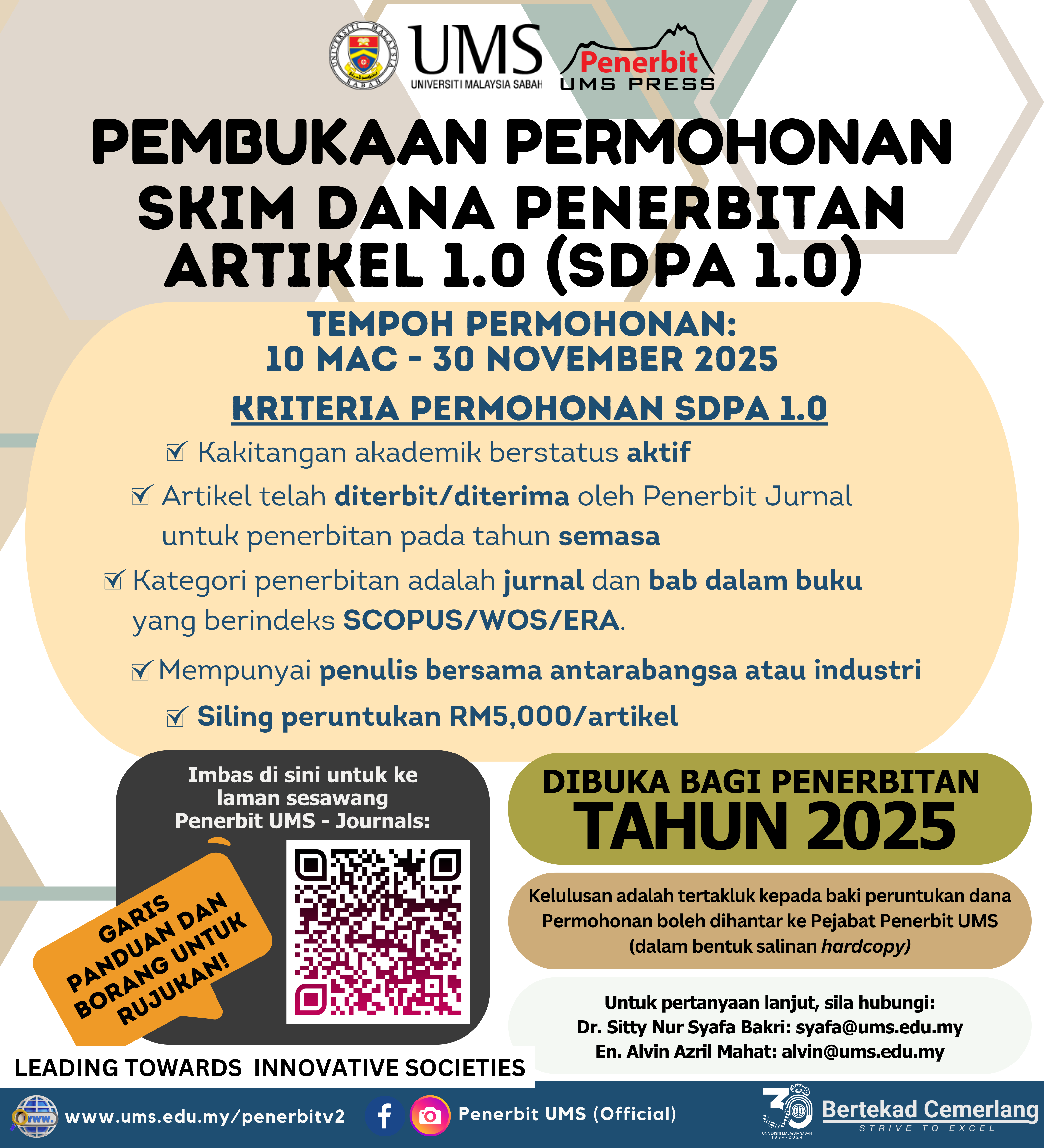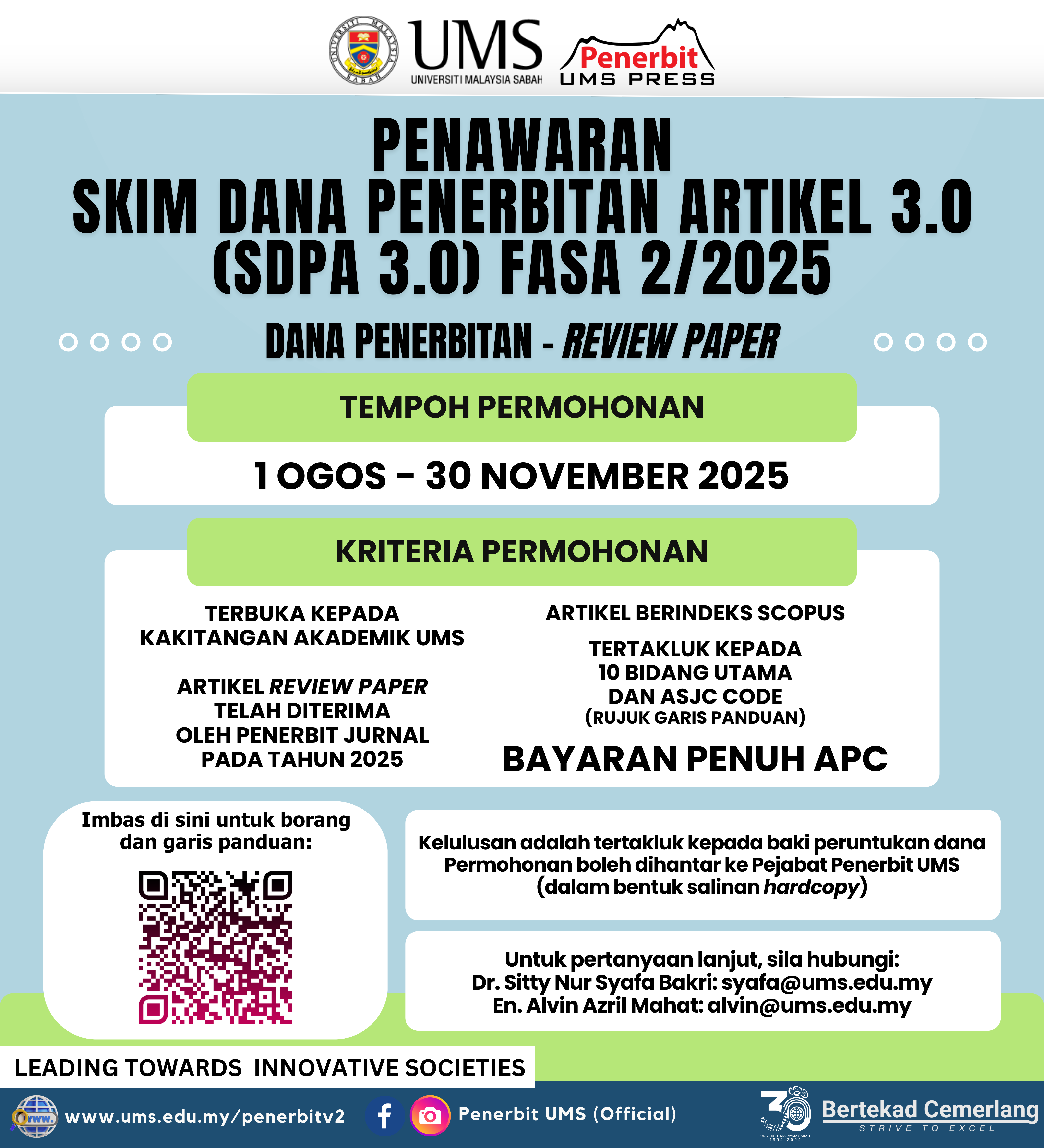 Sukacita dimaklumkan bahawa pihak Penerbit UMS ingin menawarkan Dana Penerbitan Artikel Fasa 2 seperti berikut: