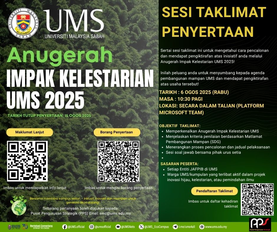 Inilah peluang anda untuk menyumbang kepada agenda pembangunan mampan UMS dan mendapat pengiktirafan atas usaha tersebut!