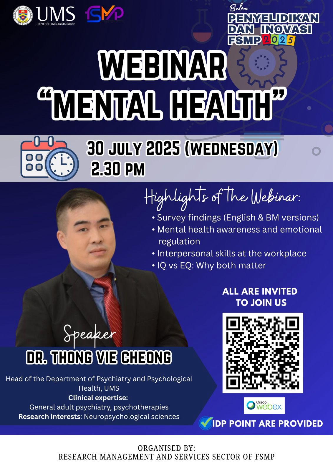 🌐 Platform: Webex https://ums-edu-my.webex.com/ums-edu-my/j.php?MTID=md057daf466653db4cc1ba10d6773404c atau imbas kod QR dalam poster untuk akses