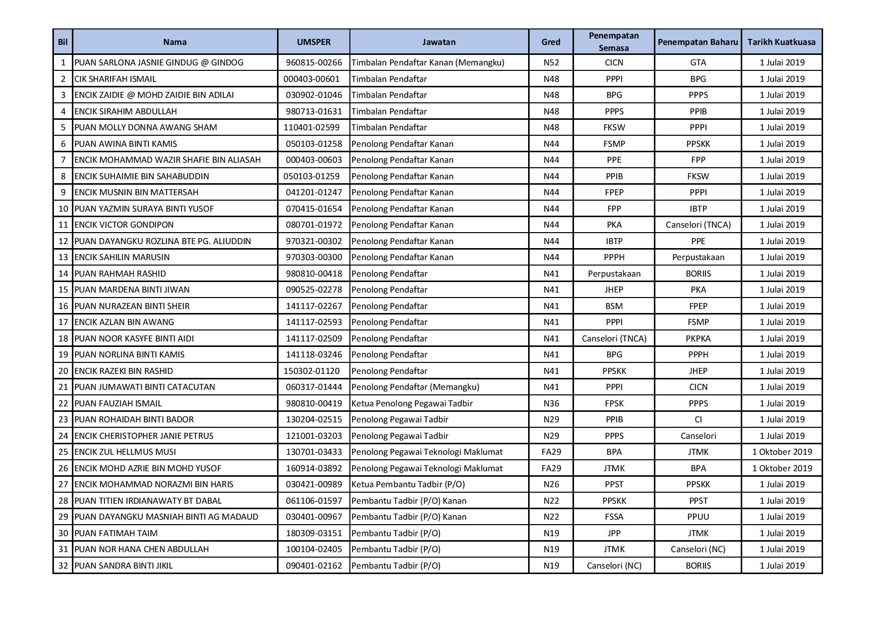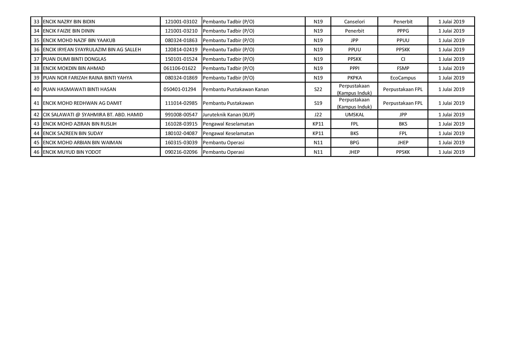 SUBJEK: PENGUMUMAN PERTUKARAN TEMPAT BERTUGAS KAKITANGAN PENTADBIRAN TAHUN 2019