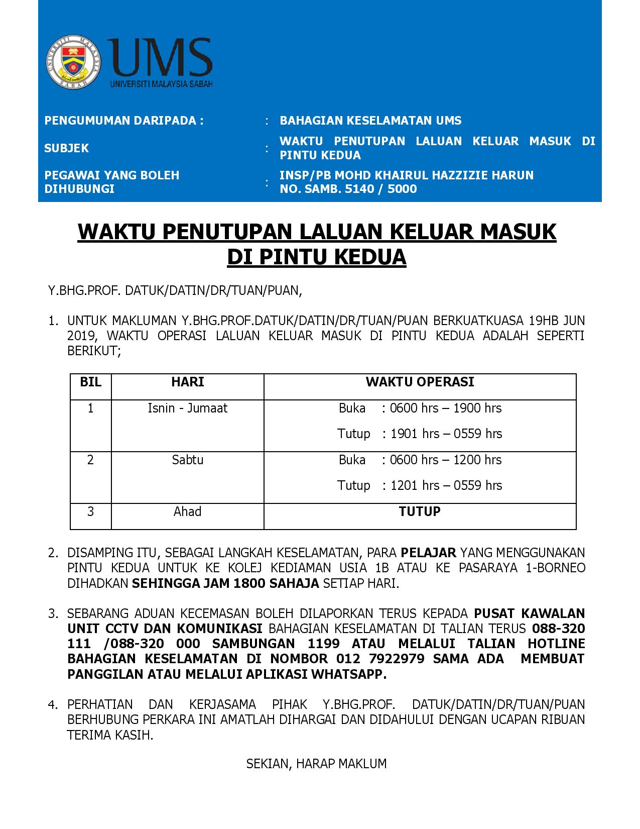 WAKTU PENUTUPAN LALUAN KELUAR MASUK DI PINTU KEDUA