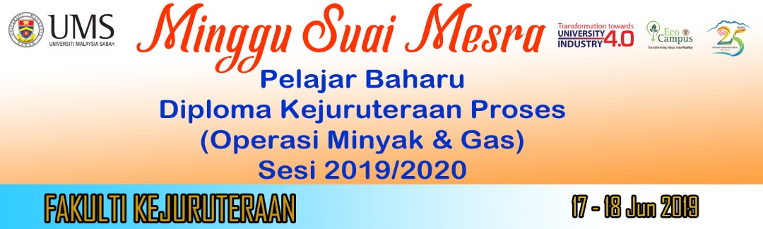 Adalah dimaklumkan bahawa,pihak FKJ akan mengadakan minggu suai mesra pelajar baharu diploma kejuruteraan proses (operasi minyak dan gas) pada ketetapan berikut.