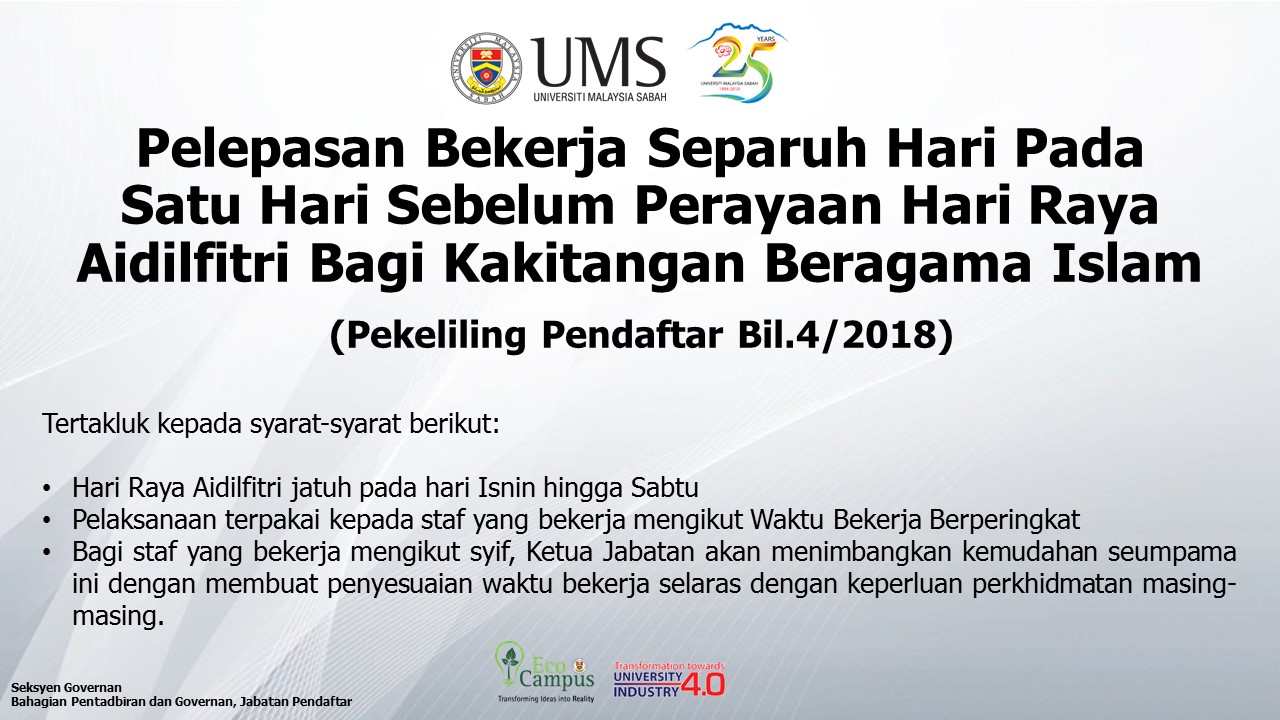 SUBJEK: PELEPASAN BEKERJA SEPARUH HARI PADA SATU HARI SEBELUM PERAYAAN HARI RAYA AIDILFITRI BAGI KAKITANGAN BERAGAMA ISLAM