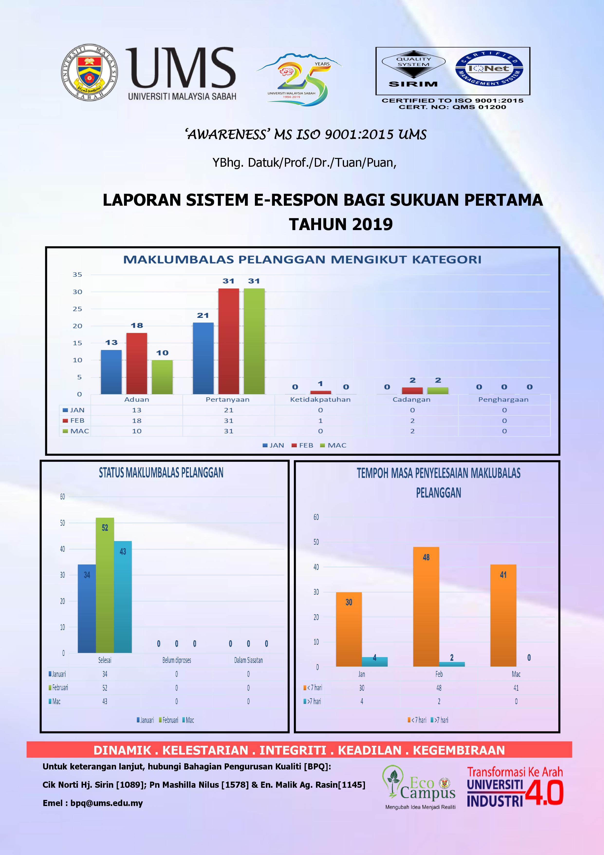 06 Mei 2019 Jumlah paparan: 3131 LAPORAN SISTEM E-RESPON BAGI SUKUAN PERTAMA TAHUN 2019 Cetak Emel PENGUMUMAN DARIPADA: JABATAN PENDAFTARSUBJEK: LAPORAN SISTEM E-RESPON BAGI SUKUAN PERTAMA TAHUN 2019 MAKLUMAT SISTEM E RESPON SUKUAN PERTAMA 2019 (.pdf)