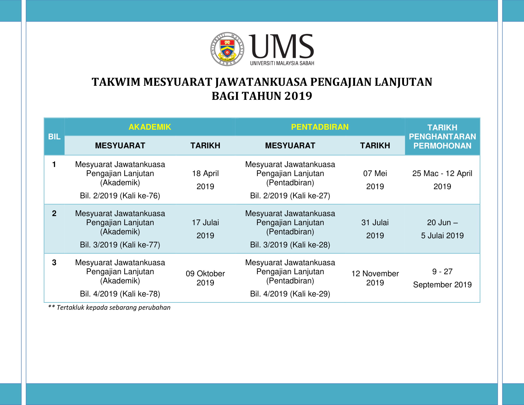 Masa : 9.00 pagi – 12.30 tengahari