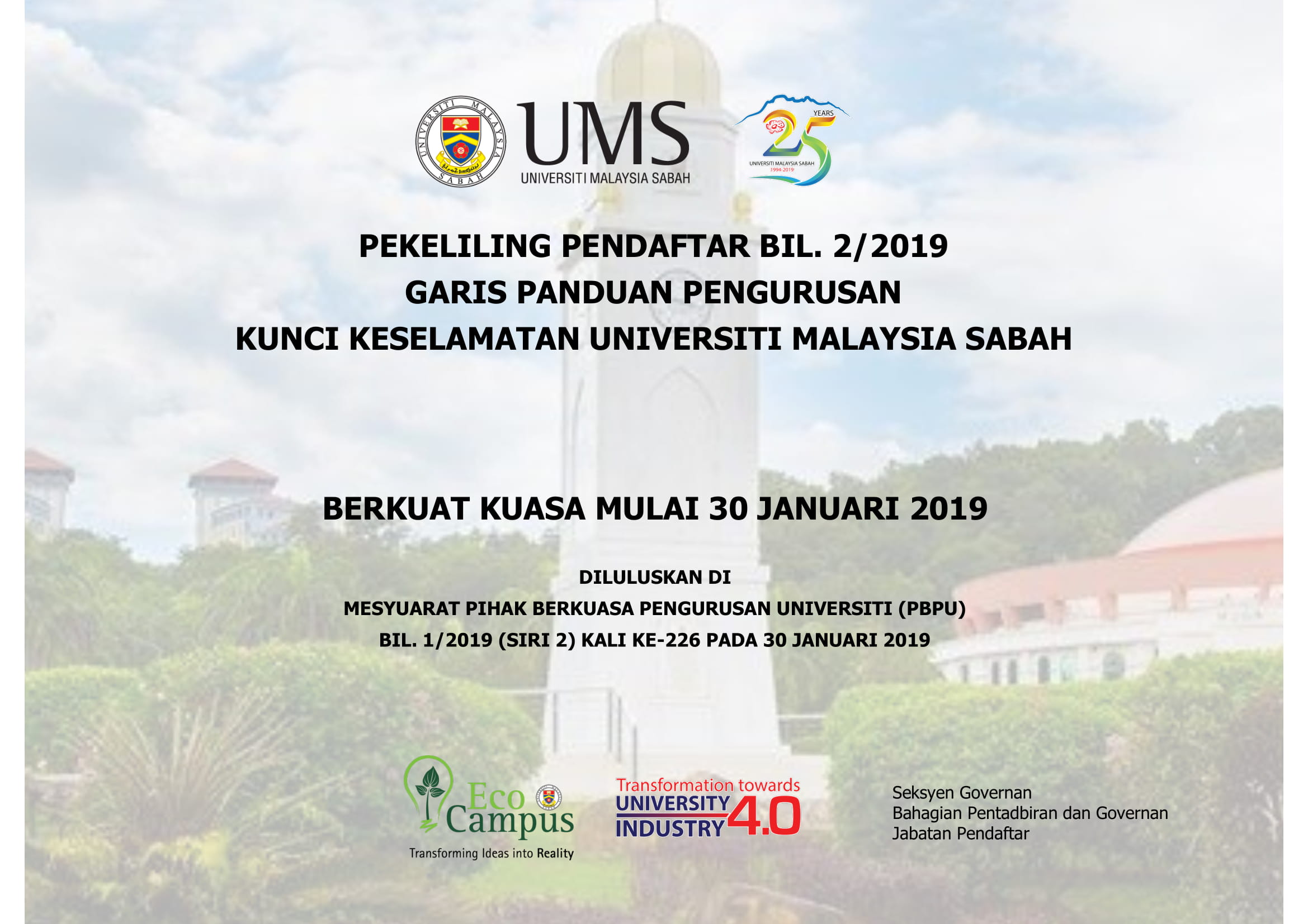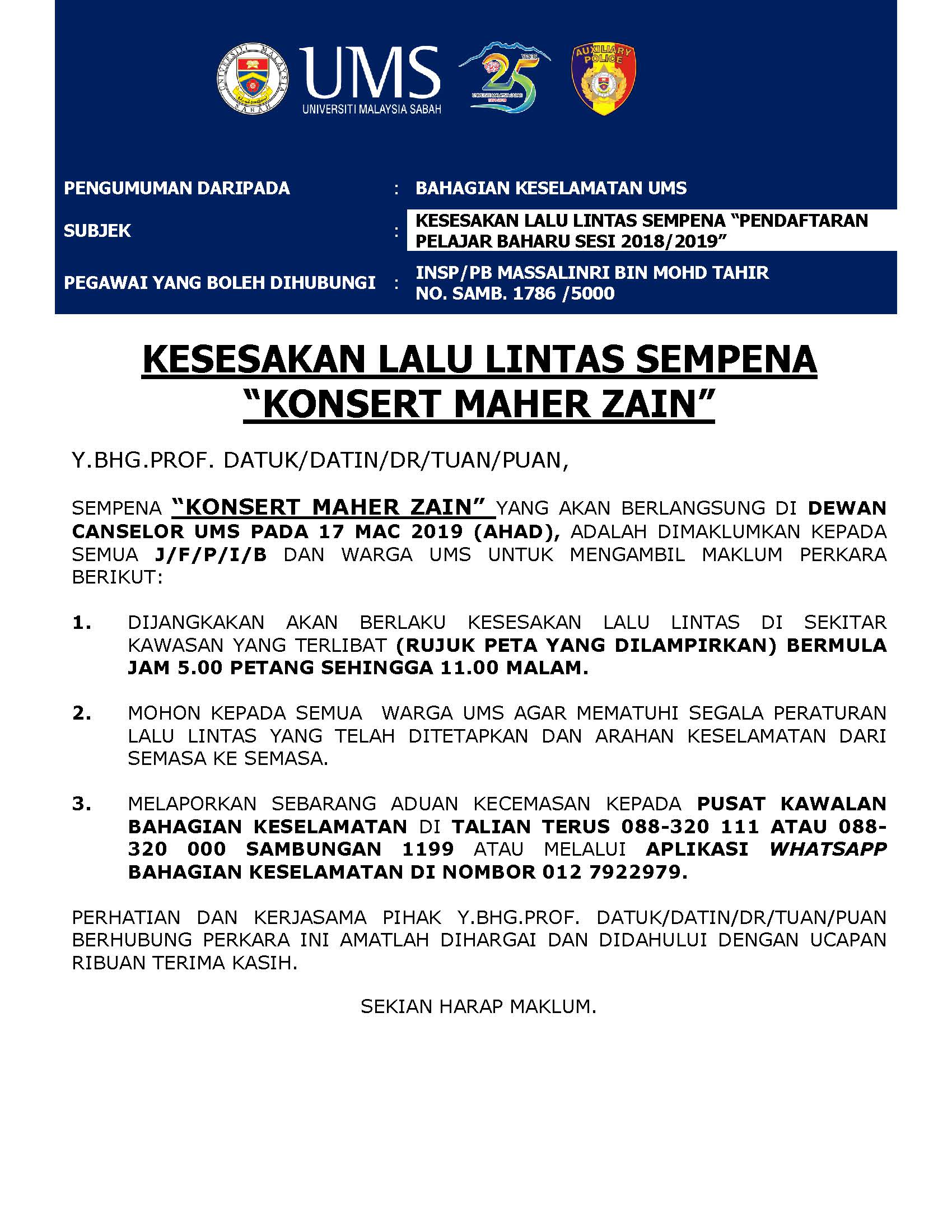 3. Mohon perkara ini dimaklumkan kepada semua kakitangan di J/F/P/I/B masing-masing. Pekeliling tersebut boleh dicapai melalui laman web Jabatan Pendaftar (http://www.ums.edu.my/pendaftar/).