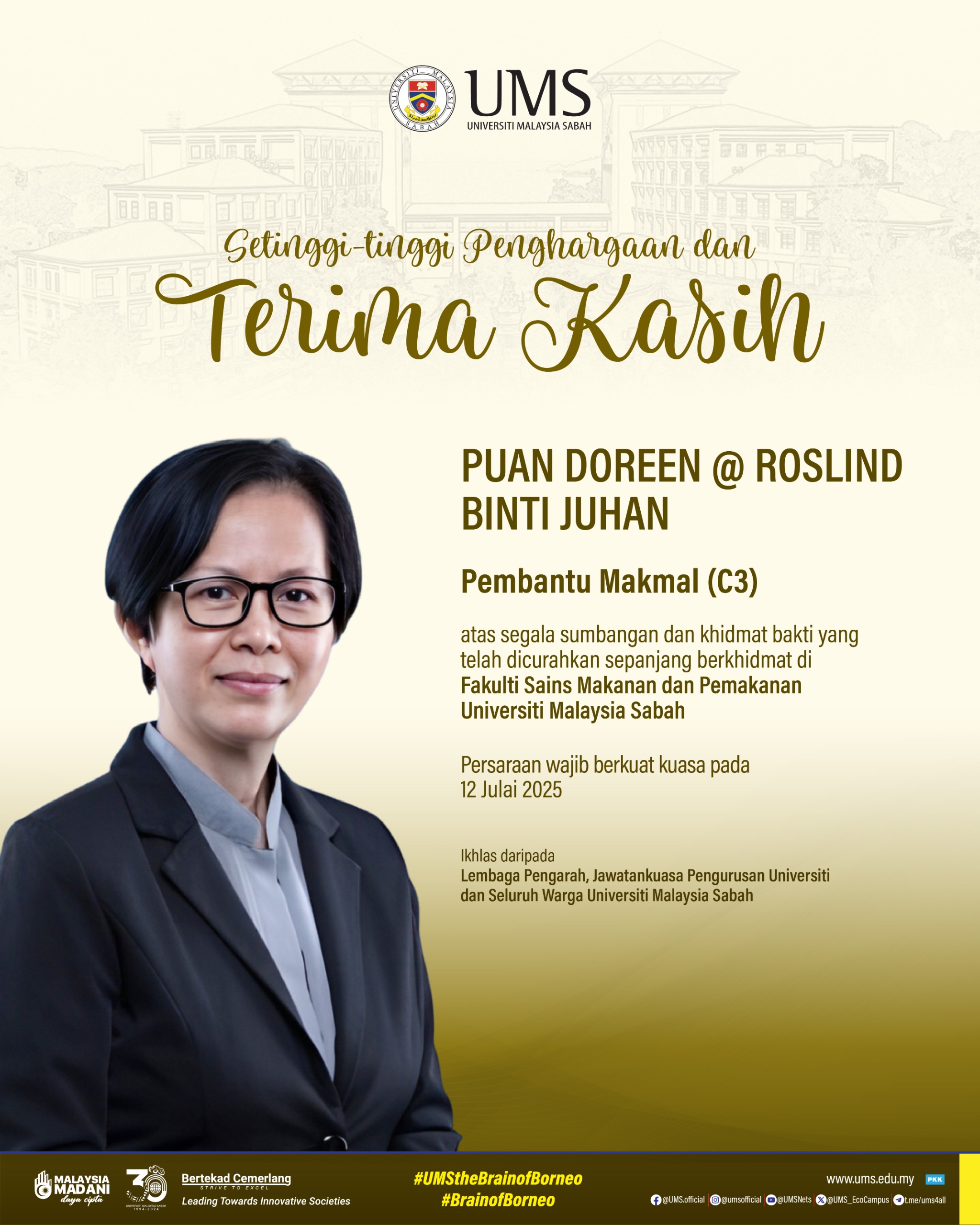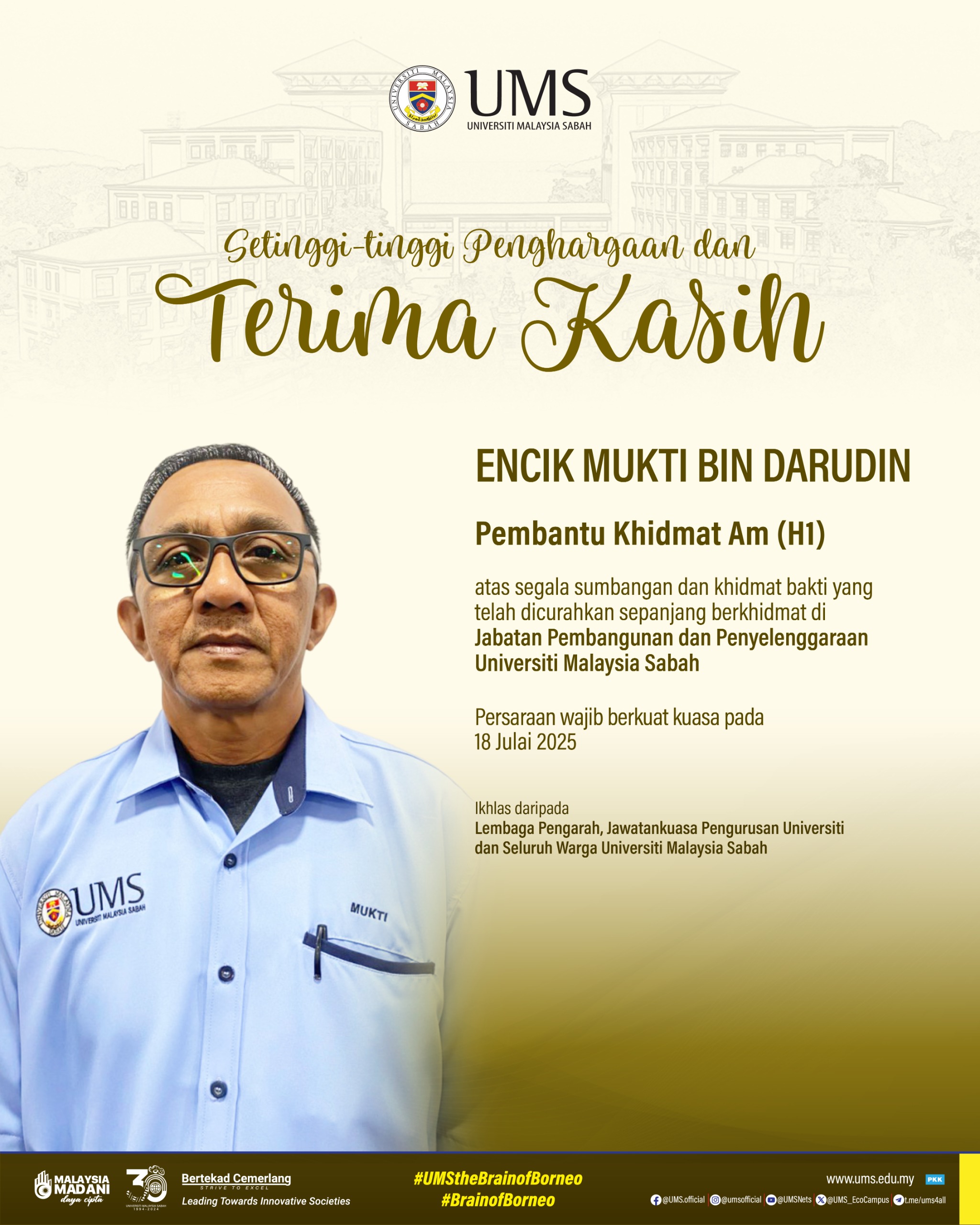 Perpindahan sementara Bilik Menunggu VIP, Pusat Komunikasi Korporat ke Bilik Taklimat dan Tayangan Muzium UMS, Aras 1, Blok Selatan, Bangunan Canselori bermula 18 Julai 2025 hingga 18 Ogos 2025 untuk memberikan laluan pengubahsuaian.