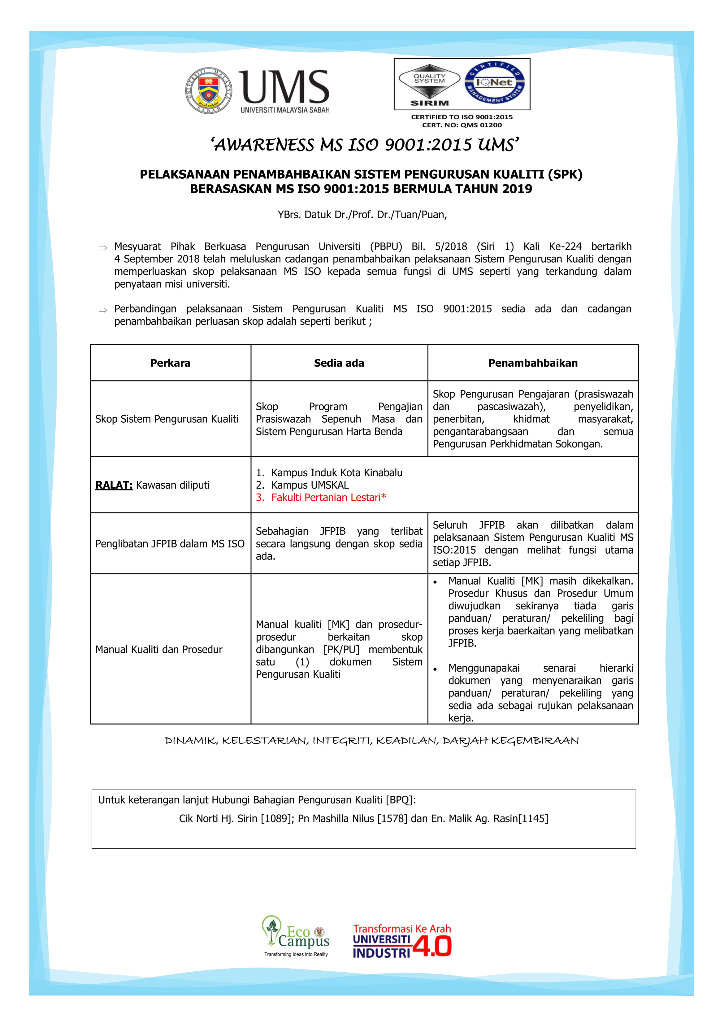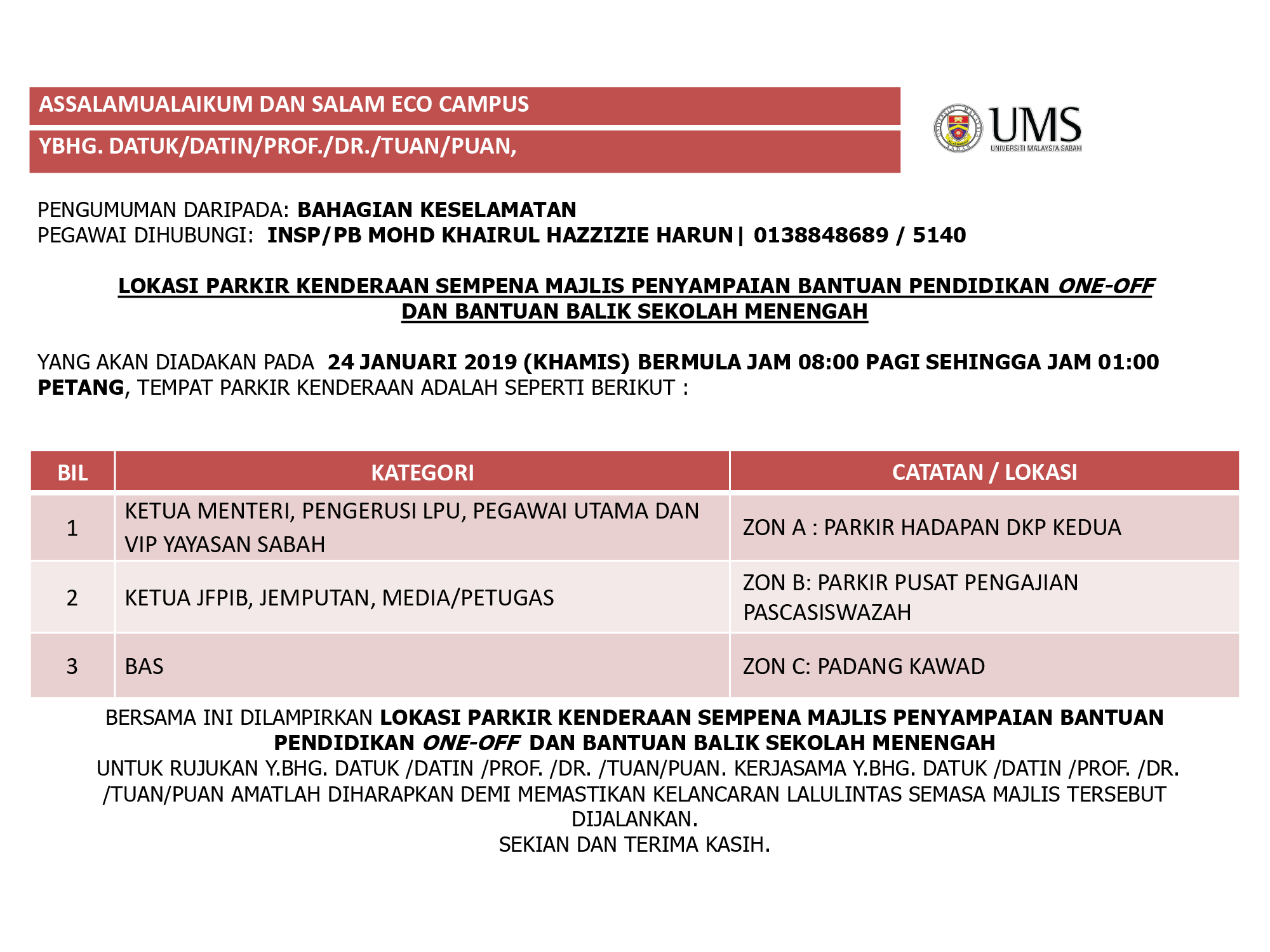 "Terima kasih diucapkan kepada seluruh warga Universiti Malaysia Sabah yang telah menyokong dan menyertai pertandingan ini".