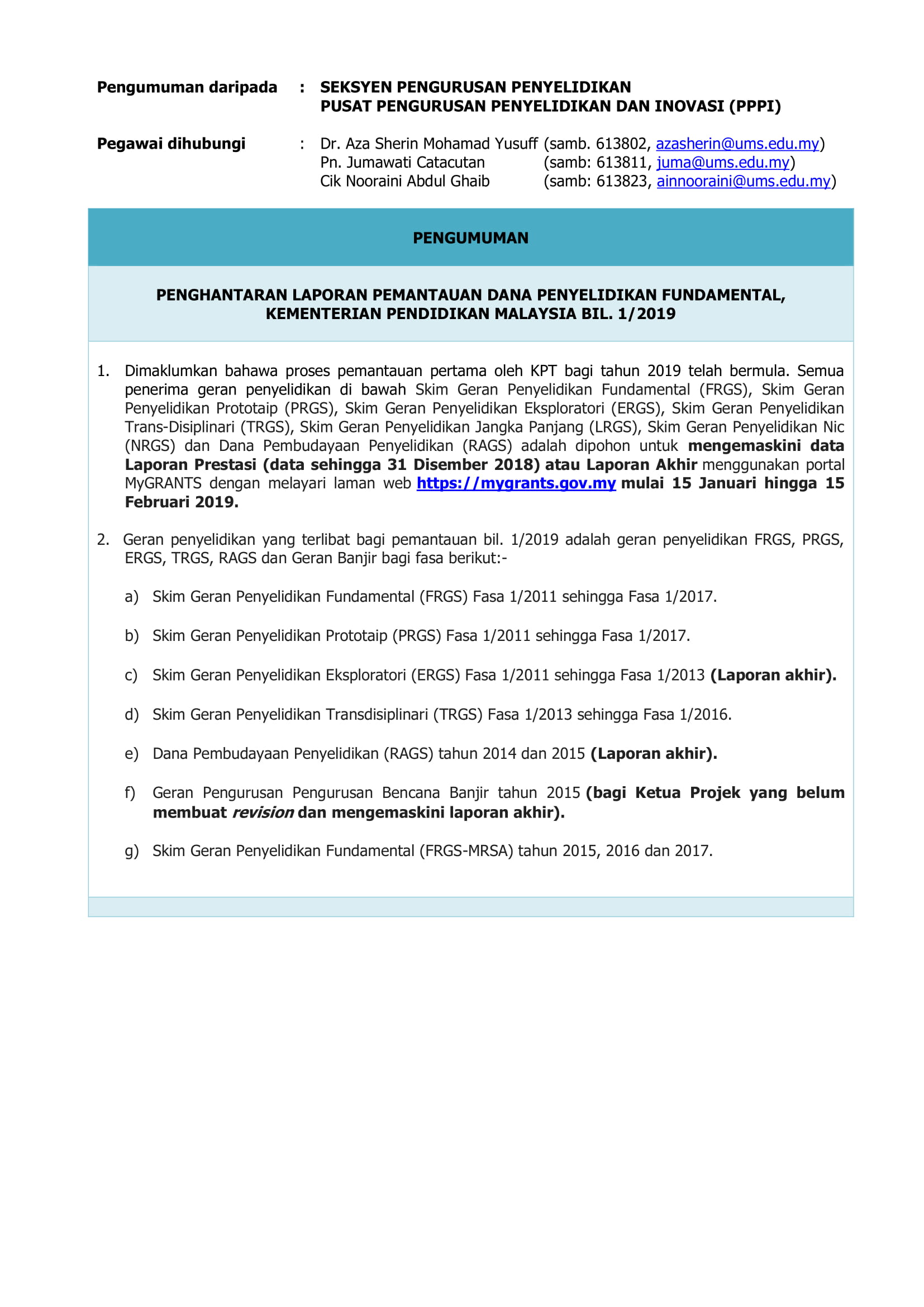 PENGUMUMAN DARIPADA : INSTITUT PENYELIDIKAN BIOTEKNOLOGI