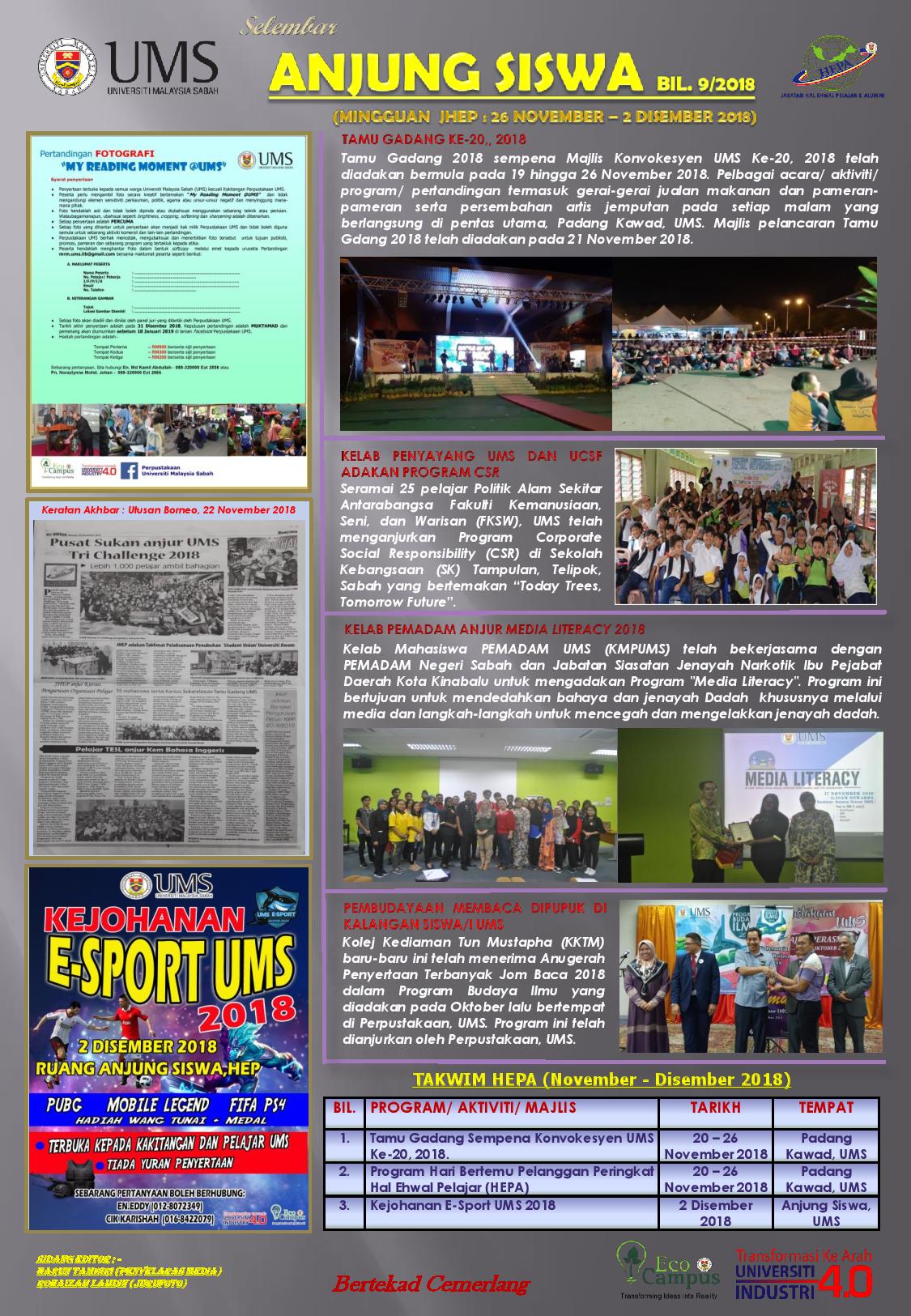 Semua graduan UMS dijemput hadir bersempena Sabah Job & Entrepreneur Fair 2018 pada 24 dan 25 November 2018 (Sabtu- Ahad), bertempat di Kompleks Sukan Likas, Sabah.