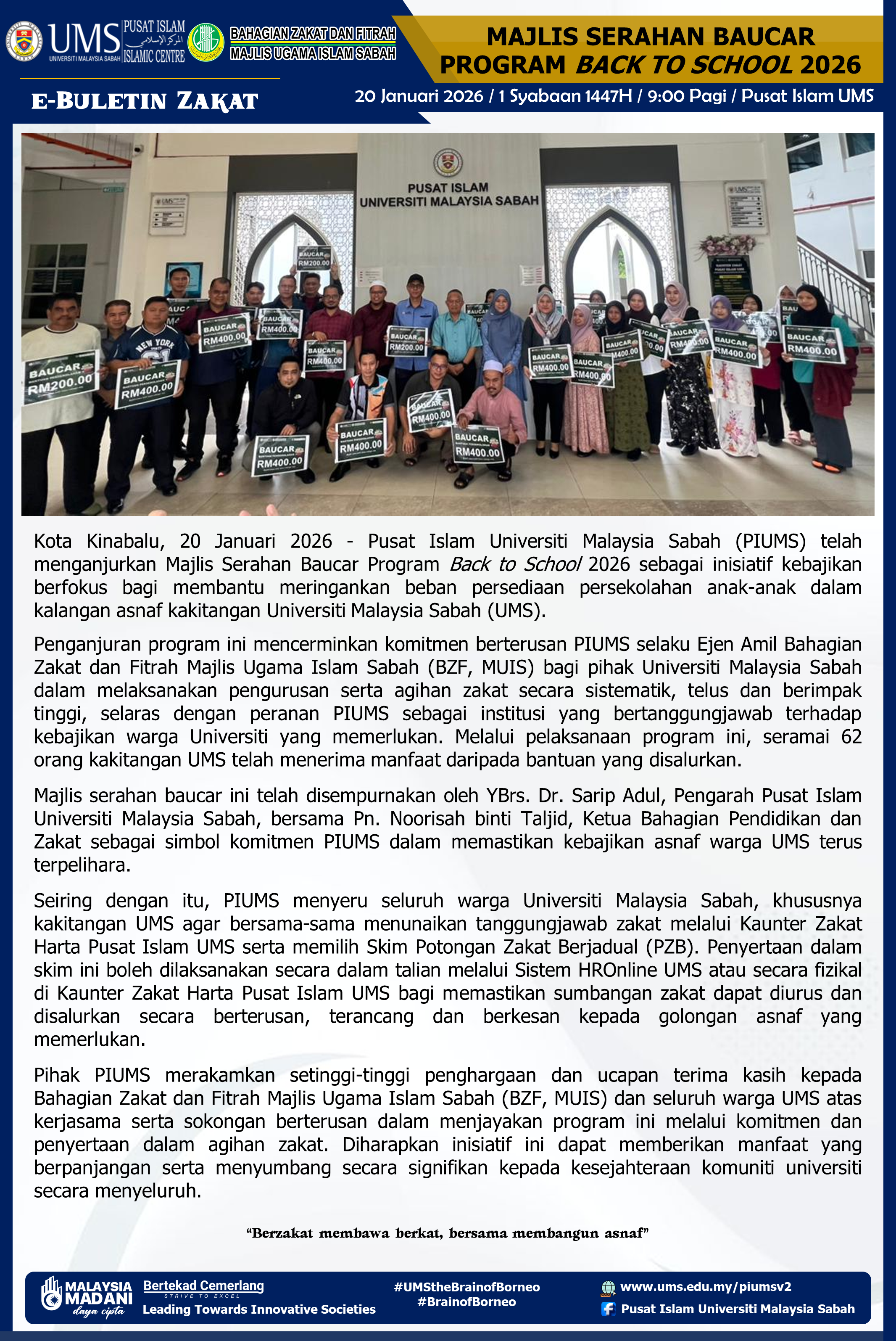 Pengumuman Daripada: Bahagian Pendidikan dan Zakat, Pusat Islam UMS