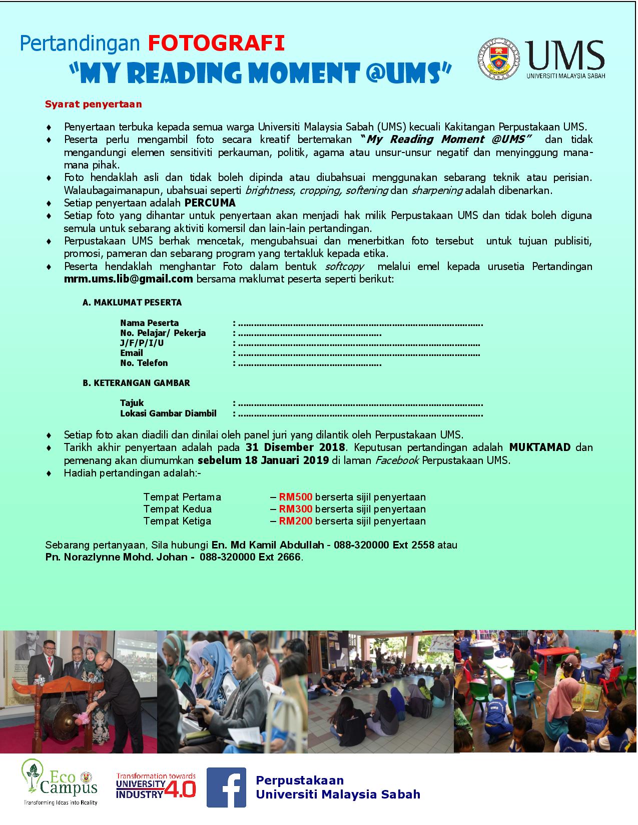 SUBJEK: PERTANDINGAN FOTOGRAFI "MY READING MOMENT @UMS"