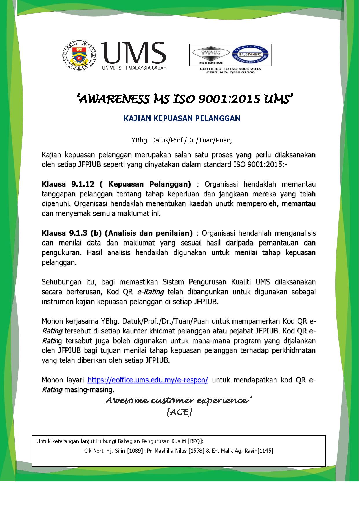 Sehubungan itu, kami menjemput YBhg. Prof./ Dr./ Tuan/ Puan/Encik/ Cik dan seluruh kakitangan dan pelajar di bawah seliaan YBhg. Prof./ Dr./ Tuan/ Puan/Encik/ Cik untuk menyertai pertandingan Ihtifal dan Musabaqah al-Quran peringkat Universiti Malaysia Sabah.