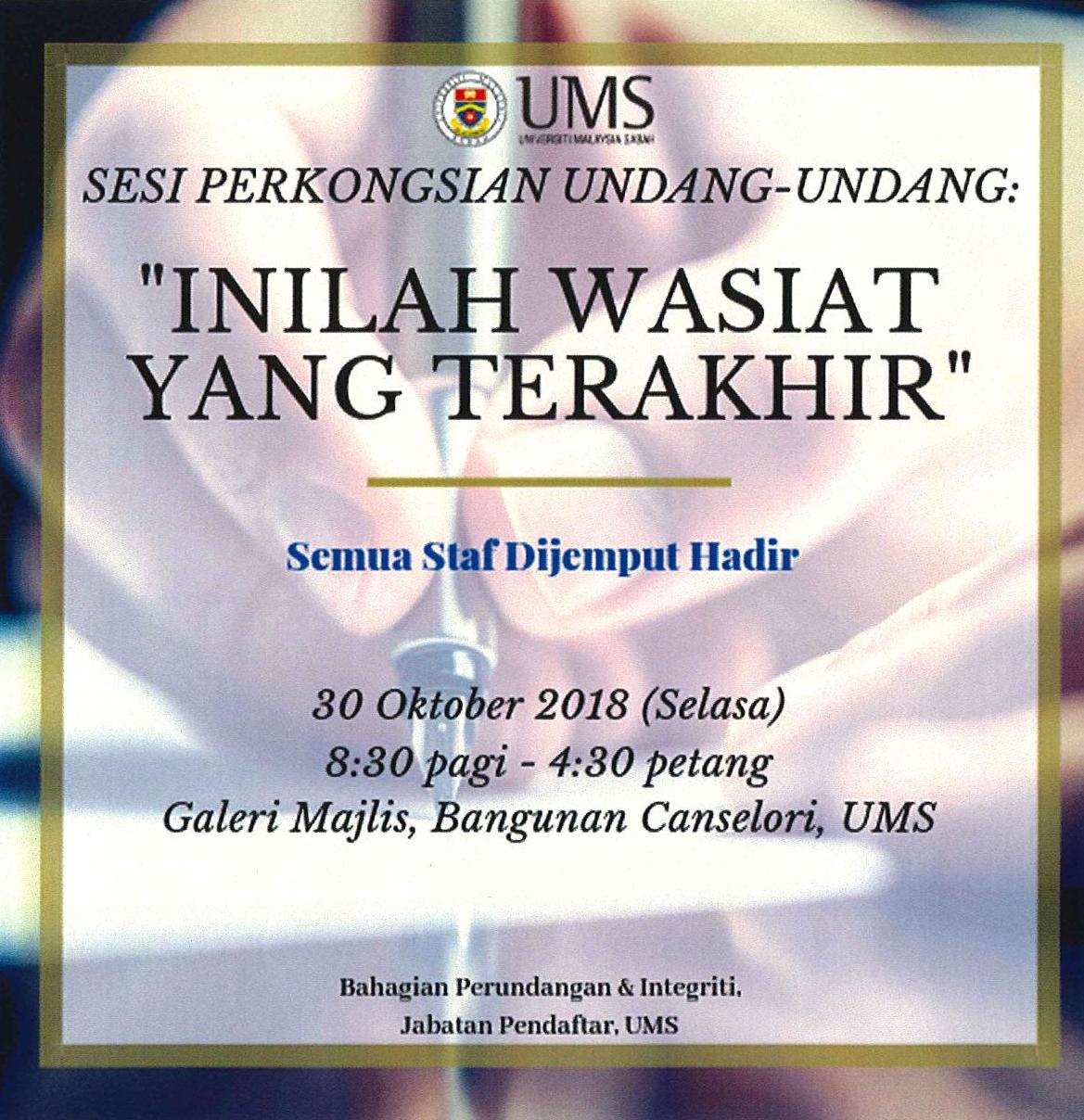 KEPADA : SEMUA KAKITANGAN UNIVERSITI MALAYSIA SABAH