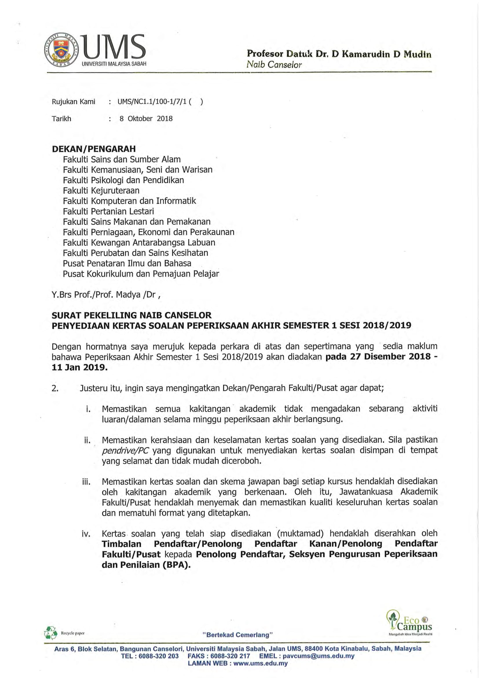 Pengumuman Daripada: Fakulti Perubatan dan Sains Kesihatan, UMS