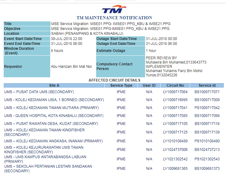 SUBJEK: GANGGUAN PERKHIDMATAN RANGKAIAN UNIVERSITI MALAYSIA SABAH