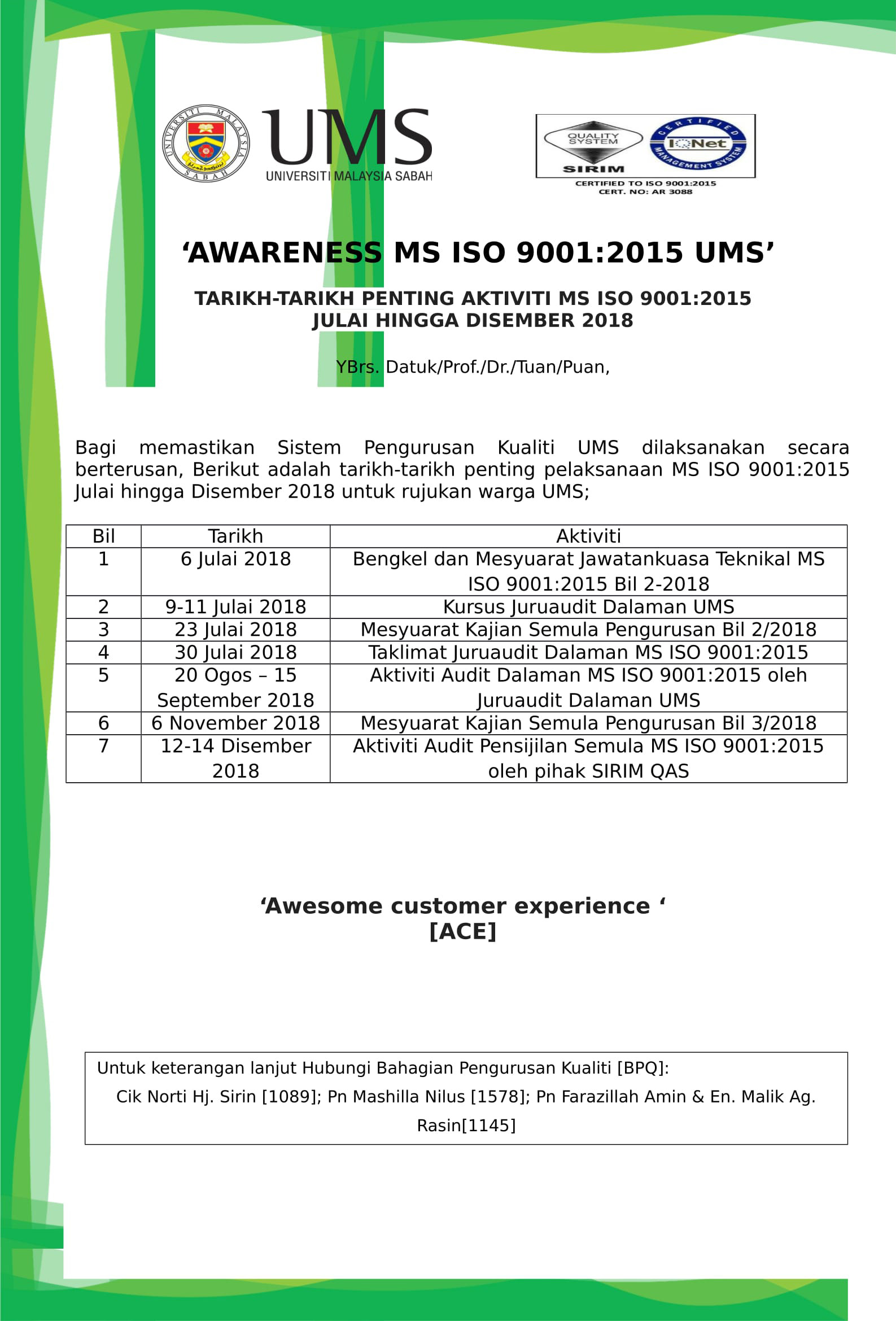 Subjek: Awareness MS ISO 9001:2015 UMS