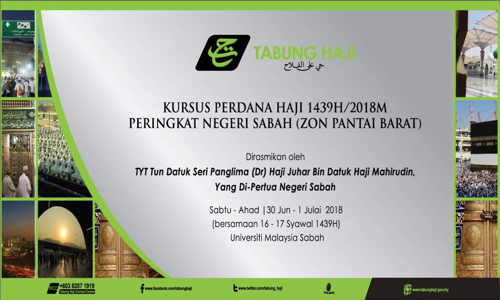 SUBJEK: MAKLUMAN PENGANJURAN KURSUS PERDANA HAJI 1439H/2018M PERINGKAT NEGERI SABAH (ZON PANTAI BARAT)