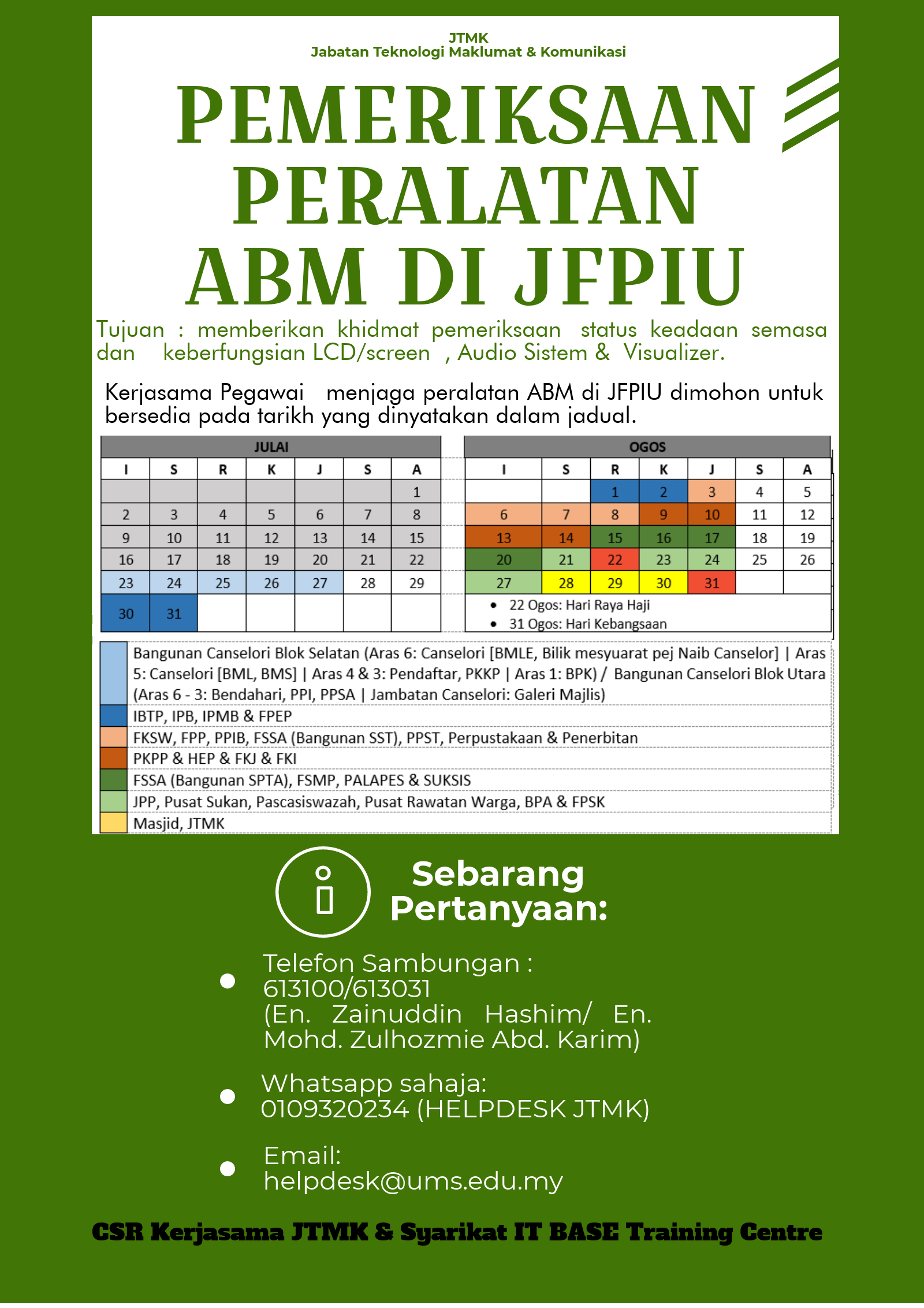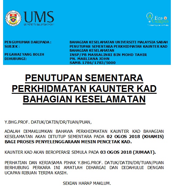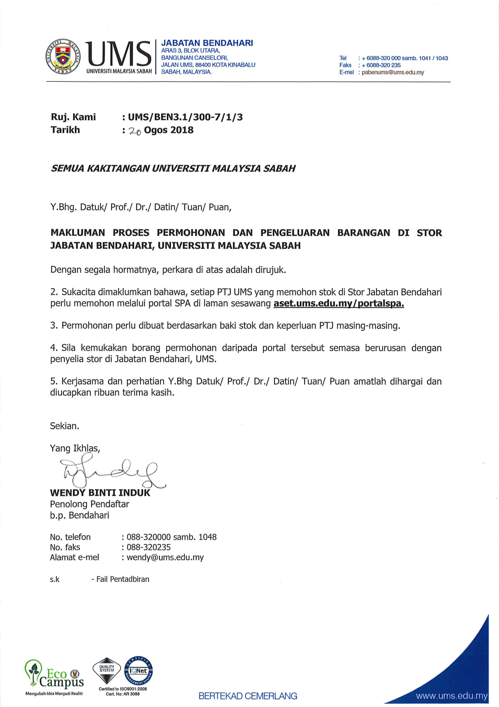 Pengumuman Daripada: Bahagian Pengurusan Kualiti (BPQ), Jabatan Pendaftar