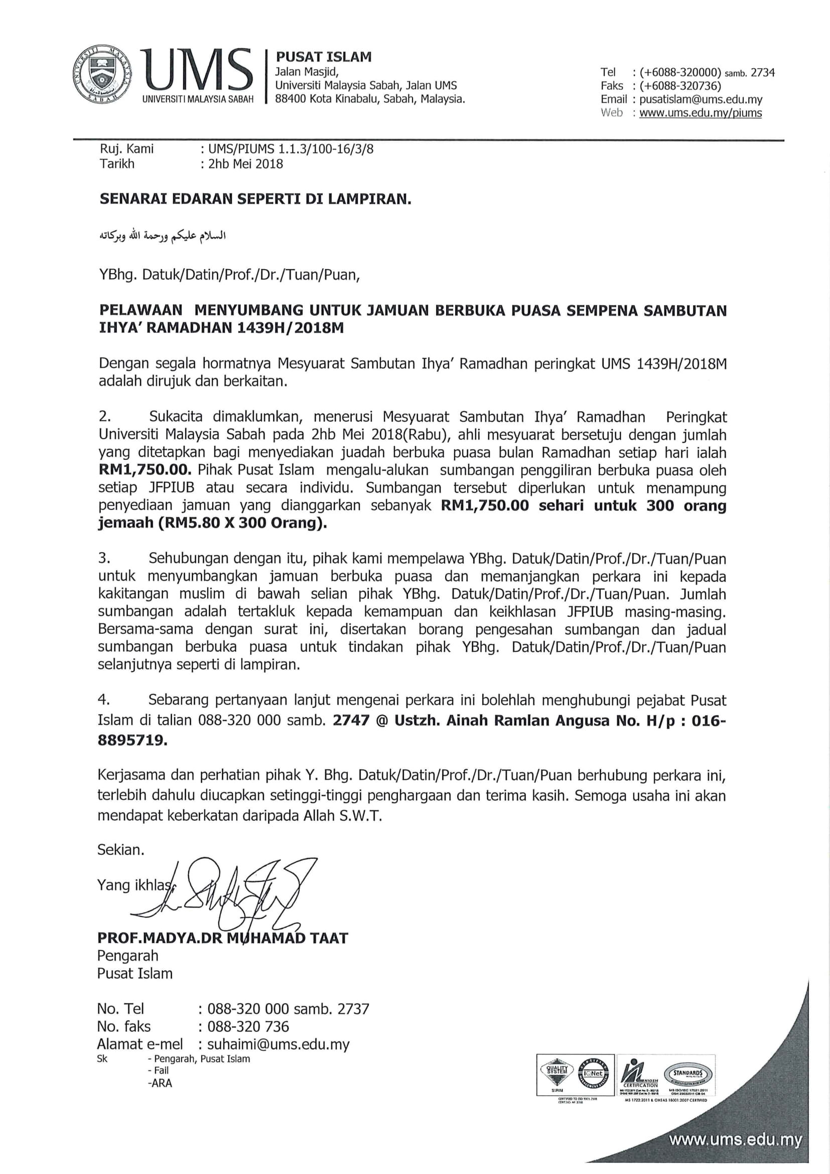 Kerjasama dan perhatian pihak YBhg. Datuk/Datin/Prof./Dr./Tuan/