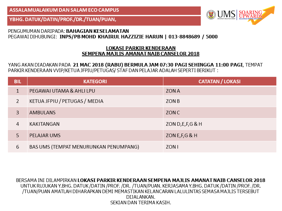 - Urusetia TISC UMS : Dr. Azaze @ Azizi Haji Abdul Adis (No. samb: 613803, Emel: Alamat emel ini dilindungi dari Spambot. Anda perlu hidupkan JavaScript untuk melihatnya.)/ Pn. Rozaidah Amir Hussein (No. samb: 613806, Emel: Alamat emel ini dilindungi dari Spambot. Anda perlu hidupkan JavaScript untuk melihatnya.)