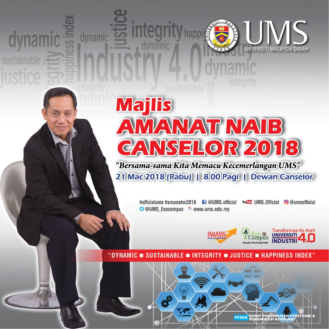 2. Sukacita dimaklumkan Universiti Malaysia Sabah akan mengadakan Majlis Amanat Naib Canselor UMS 2018 pada ketetapan seperti berikut: