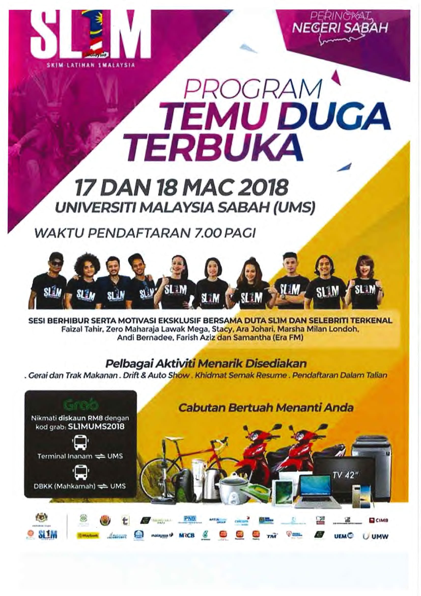 *Makluman tambahan: Sesi pendaftaran untuk semua staf Universiti Malaysia Sabah adalah bertempat di Laman Graduan.
