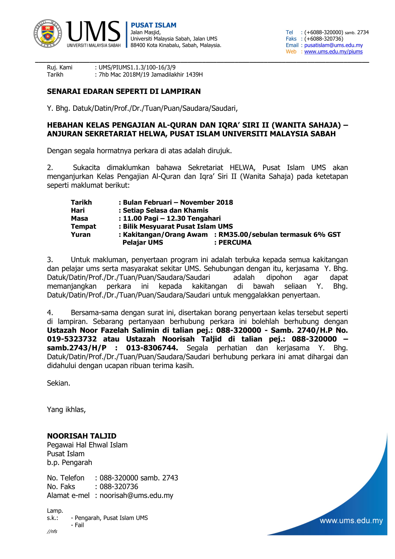 SUBJEK: PEMAKLUMAN TARIKH MAJLIS KONVOKESYEN UMS KE-20 TAHUN 2018