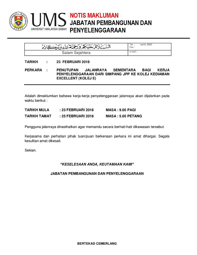 PENGUMUMAN DARIPADA: PUSAT ISLAM, UMS