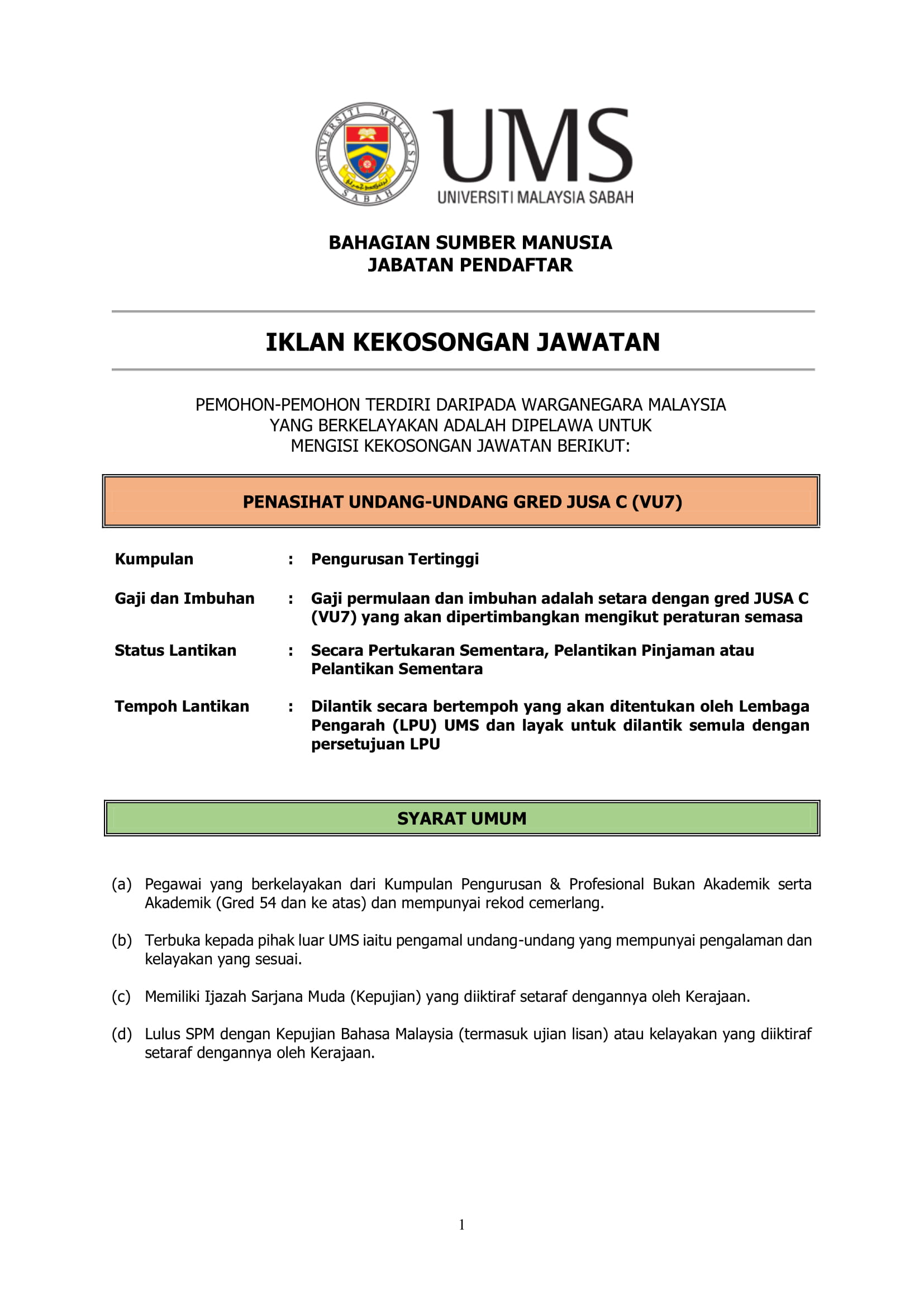 Kepada : | Universiti Malaysia Sabah (diikuti nama Jabatan / Fakulti / Pusat / Institut / Unit / Nama Kakitangan) |