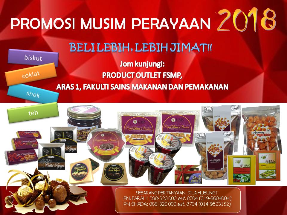 Promosi Produk FSMP di Musim Perayaan! Boleh dapatkan terus di Product Outlet FSMP dari jam9.00 pagi hingga jam4.30 petang setiap hari. Untuk keterangan lanjut boleh menghubungi nombor yang tertera. BELI LEBIH, LEBIH JIMAT!