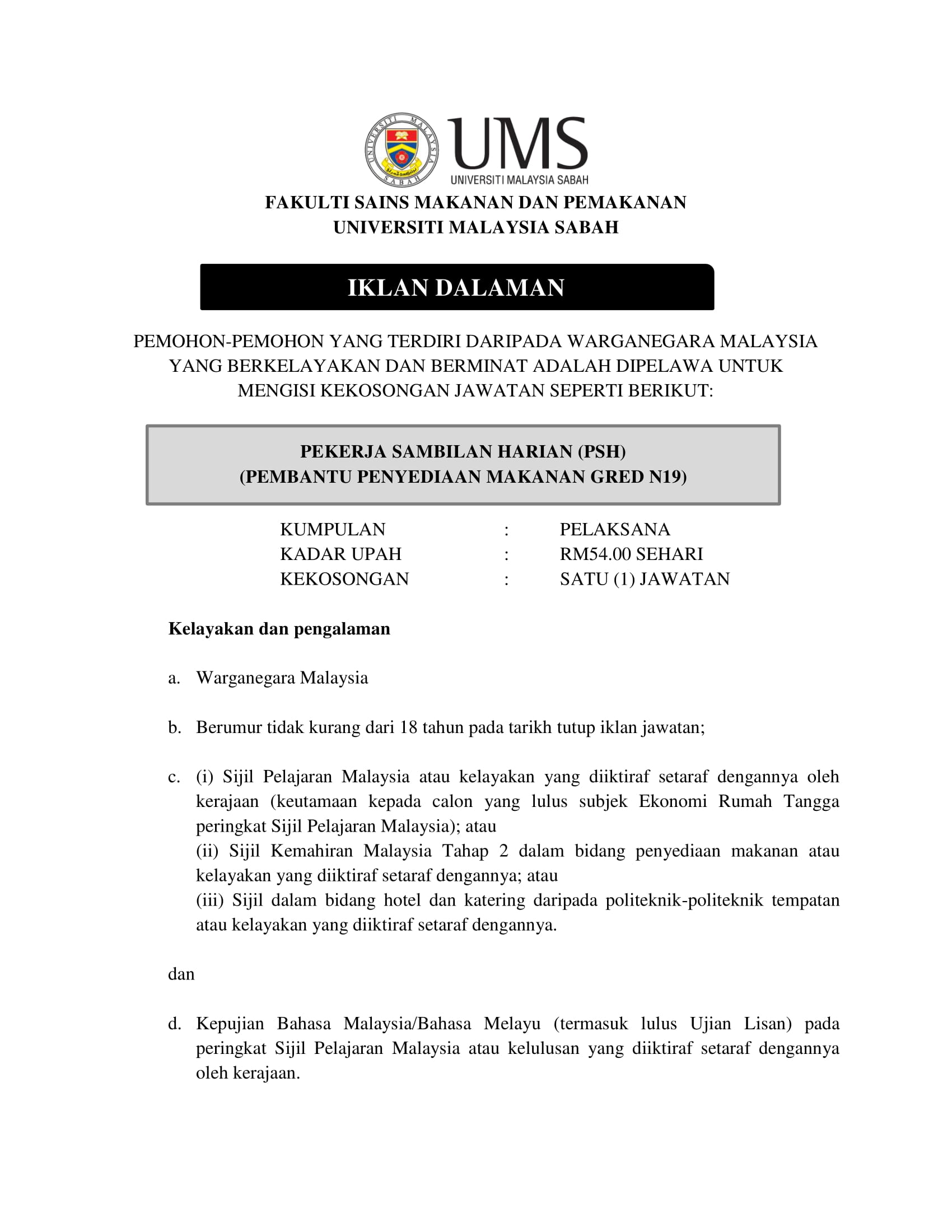 Pengumuman Daripada: Fakulti Sains Makanan dan Pemakanan