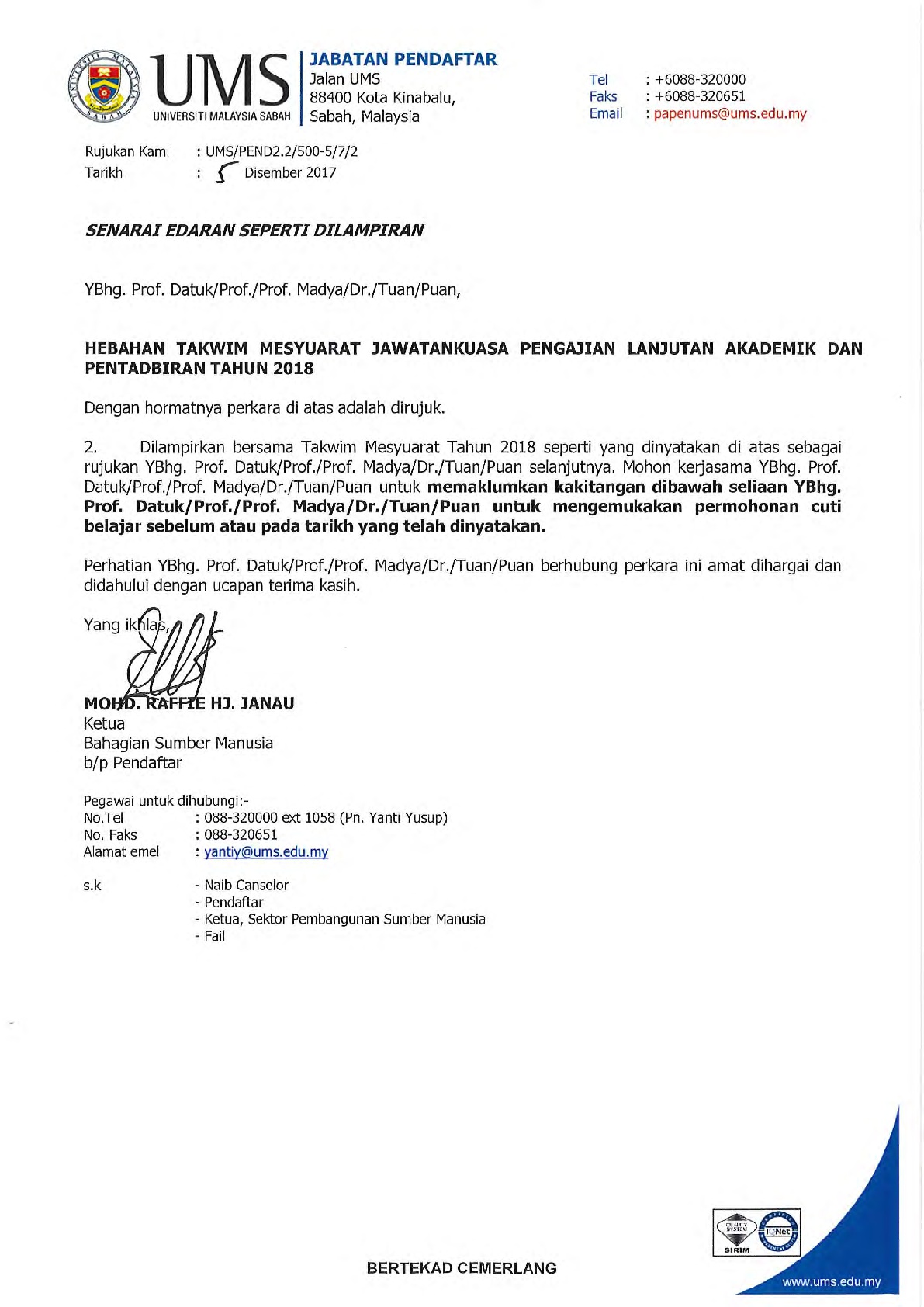 Segala perhatian dan kerjasama YBhg. Datuk / Dato’ / Datin /Prof./Dr./Tuan/Puan, amatlah dihargai dan diucapkan terima kasih.