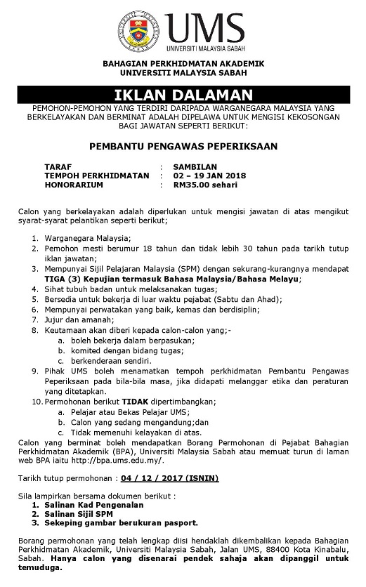 Yuran Penyertaan : Percuma (Kakitangan UMS/Pelajar UMS)