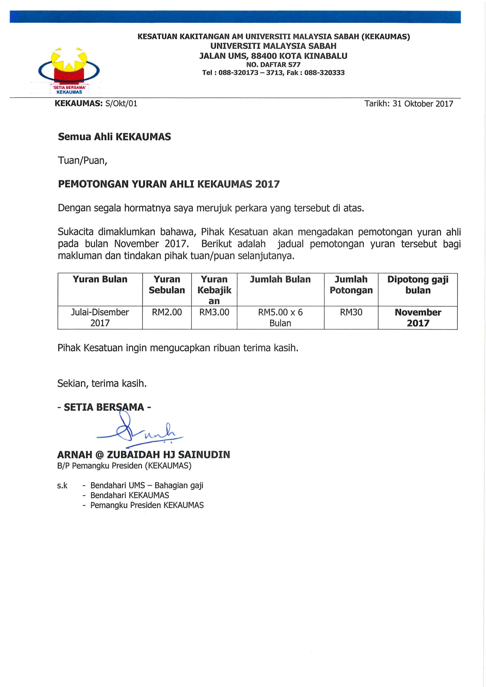 Kerjasama YBhg. Datuk/Dato’/Prof./Dr./Tuan/ Puan mengenai perkara ini didahului dengan ucapan terima kasih.