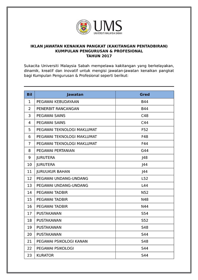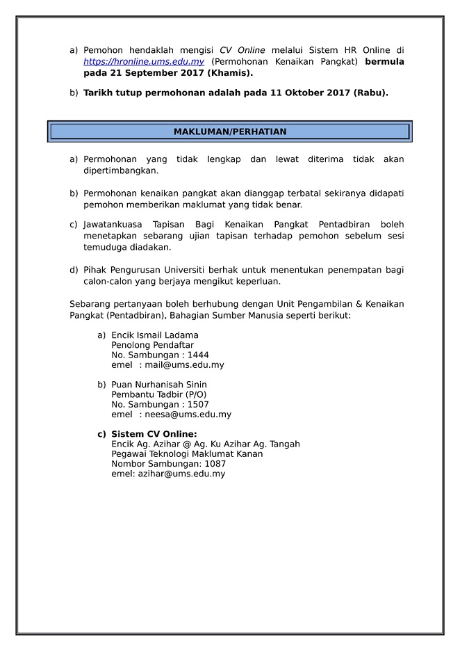 PENGUMUMAN DARIPADA : JAWATANKUASA INDUK EKOSISTEM KONDUSIF SEKTOR AWAM (EKSA) UNIVERSITI MALAYSIA SABAH