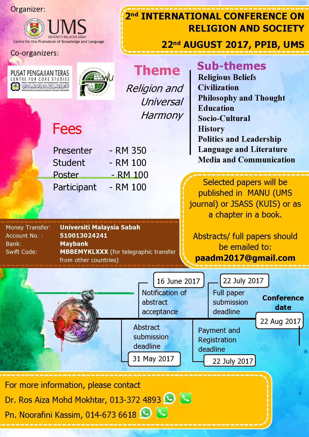 Tarikh tutup permohonan adalah pada 03 Mei 2017 (Rabu) dan sila kemukakan permohonan kepada PENDAFTAR, UNIVERSITI MALAYSIA SABAH, JALAN UMS 88400 KOTA KINABALU, SABAH. Bersama ini dilampirkan hebahan iklan berkaitan untuk perhatian YBhg. Datuk / Dato’ / Prof. / Dr. / Tuan / Puan.