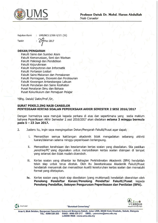 Pengumuman daripada | : Bahagian Perkhidmatan Akademik |