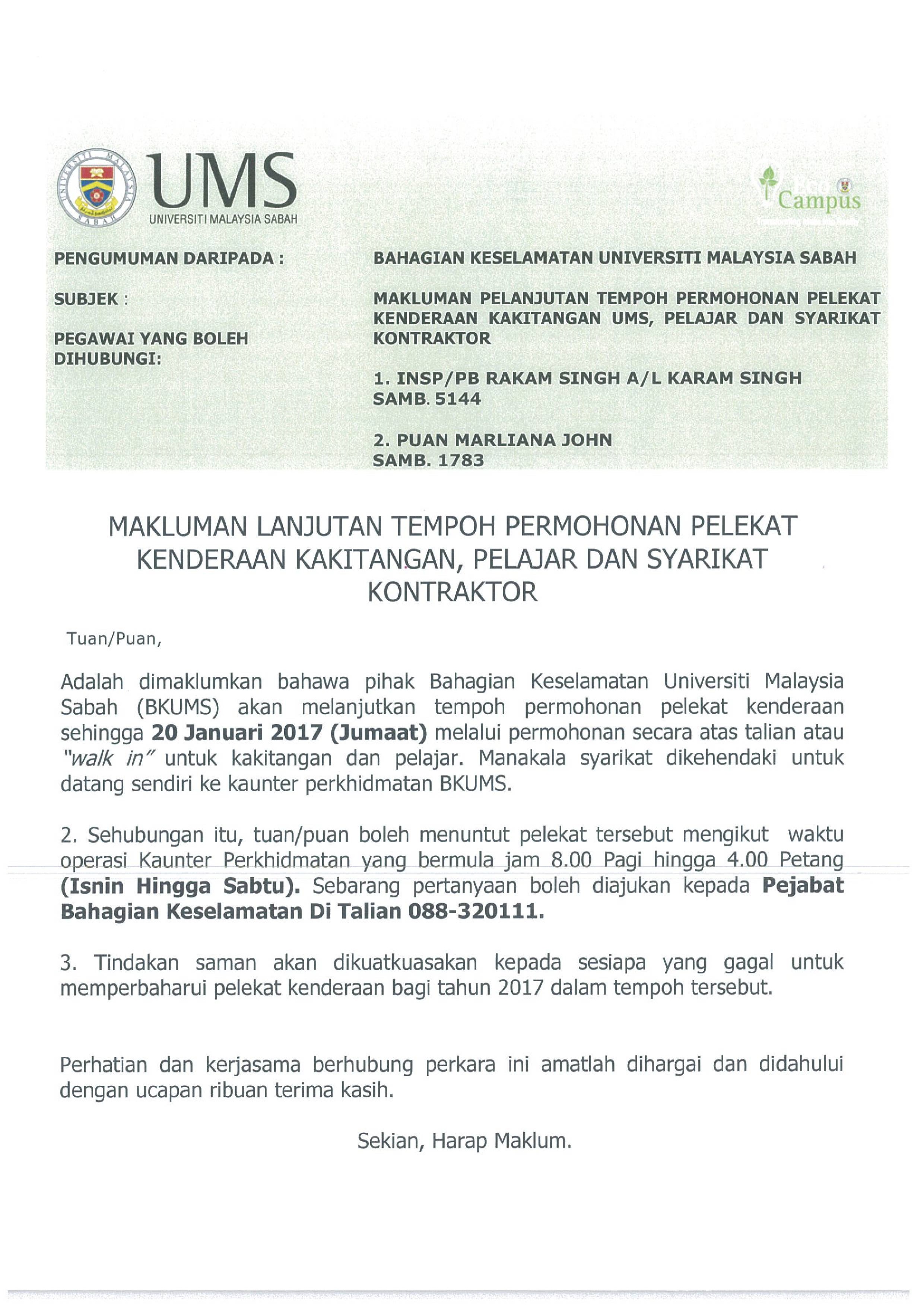 Pengumuman Daripada | : Perpustakaan Universiti Malaysia Sabah |