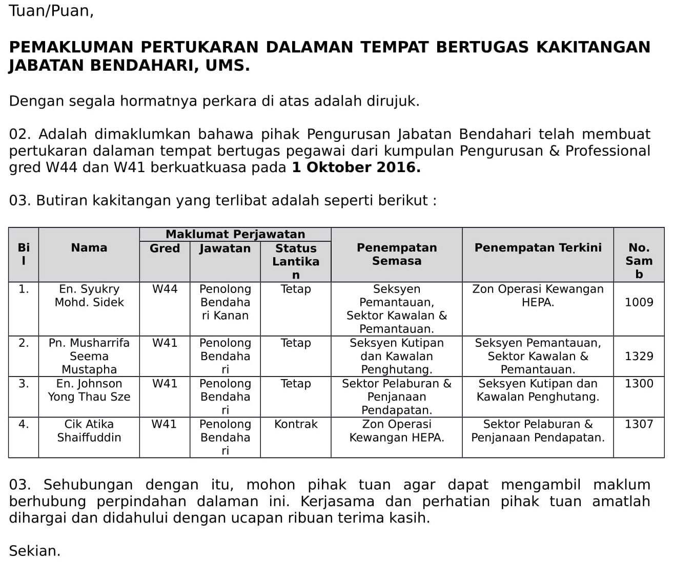 Pengumuman Daripada | : Pusat Rawatan Warga UMS |