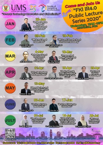 SELASA, 14 JANUARI - Warga Universiti Malaysia Sabah (UMS) dipelawa untuk menghadiri FKI IR4.0 Public Talk Series 2020 anjuran Fakulti Komputeran dan Informatik UMS.