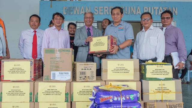 RABU, 16 JANUARI – Prihatin terhadap mangsa kebakaran yang menjejaskan lebih 300 penduduk di Kampung Pasir Putih Putatan, warga Universiti Malaysia Sabah (UMS) tampil menghulurkan sumbangan bantuan barang keperluan kepada mangsa yang terlibat.