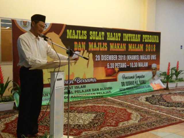 ISNIN, 24 DISEMBER – Lebih 700 warga Universiti Malaysia Sabah (UMS) termasuk pelajar antarabangsa UMS melaksanakan solat hajat secara berjemaah bersempena dengan Program Solat Hajat Imtihan Perdana dan Majlis Makan Malam Bersama Pelajar Antarabangsa 2018 di Masjid UMS baru-baru ini.