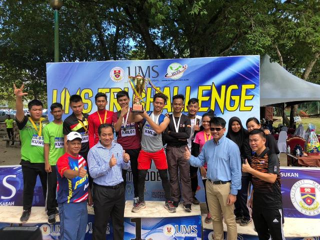 RABU, 21 NOVEMBER – Pasukan PALAPES Laut dan Pasukan Kolej Kediaman Tun Mustapha (KKTM) berjaya mengungguli cabaran Tri Challenge UMS 2018 peringkat Universiti Malaysia Sabah (UMS) yang berlangsung di Pantai Pusat Pembangunan Luar (ODEC) baru-baru ini, cabaran yang menyaksikan para peserta melakukan renang 200m, larian UMS Peak 8km, berbasikal sejauh 13km, dan cabaran berhalangan.